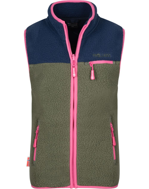 Trollkid Weste Sherpa Fleece KIDS HEMSEDAL navy/dusky olive/magenta