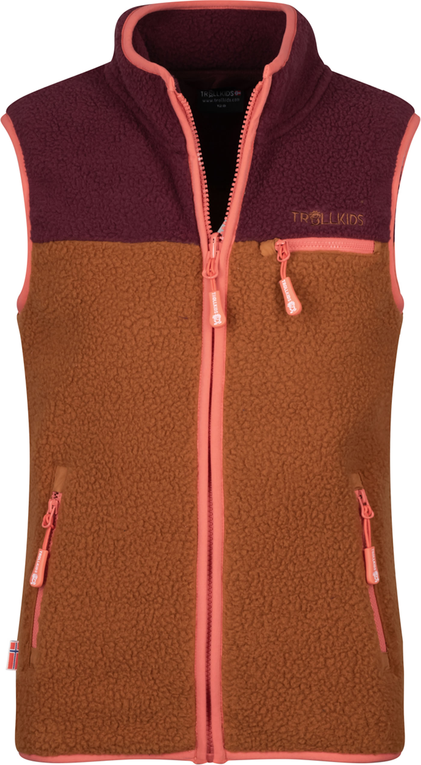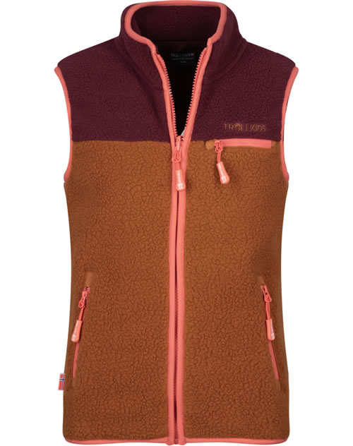 Trollkid Weste Sherpa Fleece KIDS HEMSEDAL redwood/caramel/salmon
