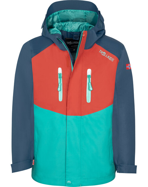 Trollkids Allwetter-Jacke 'Nusfjord' mit Zip-In - Red Clay/Mystic Blue/Blue Coral