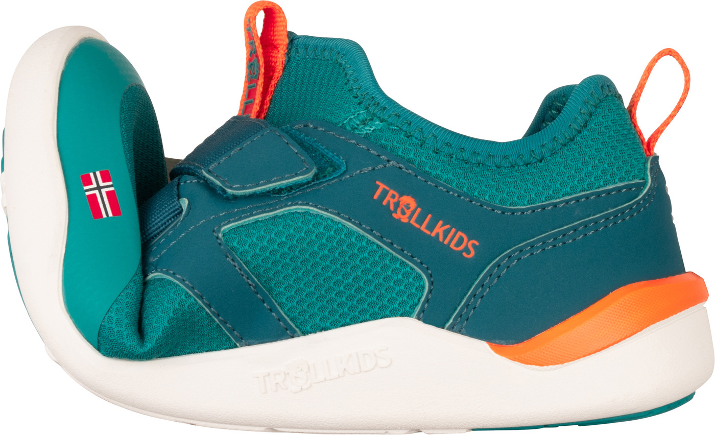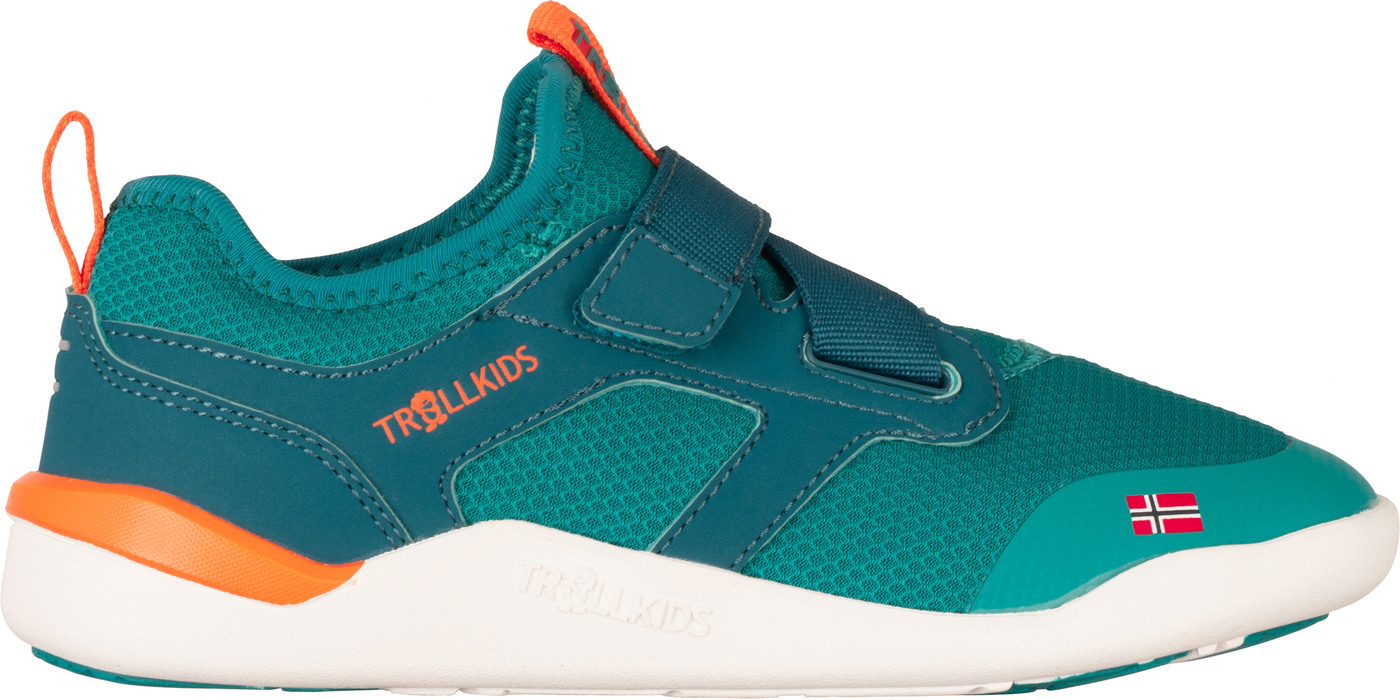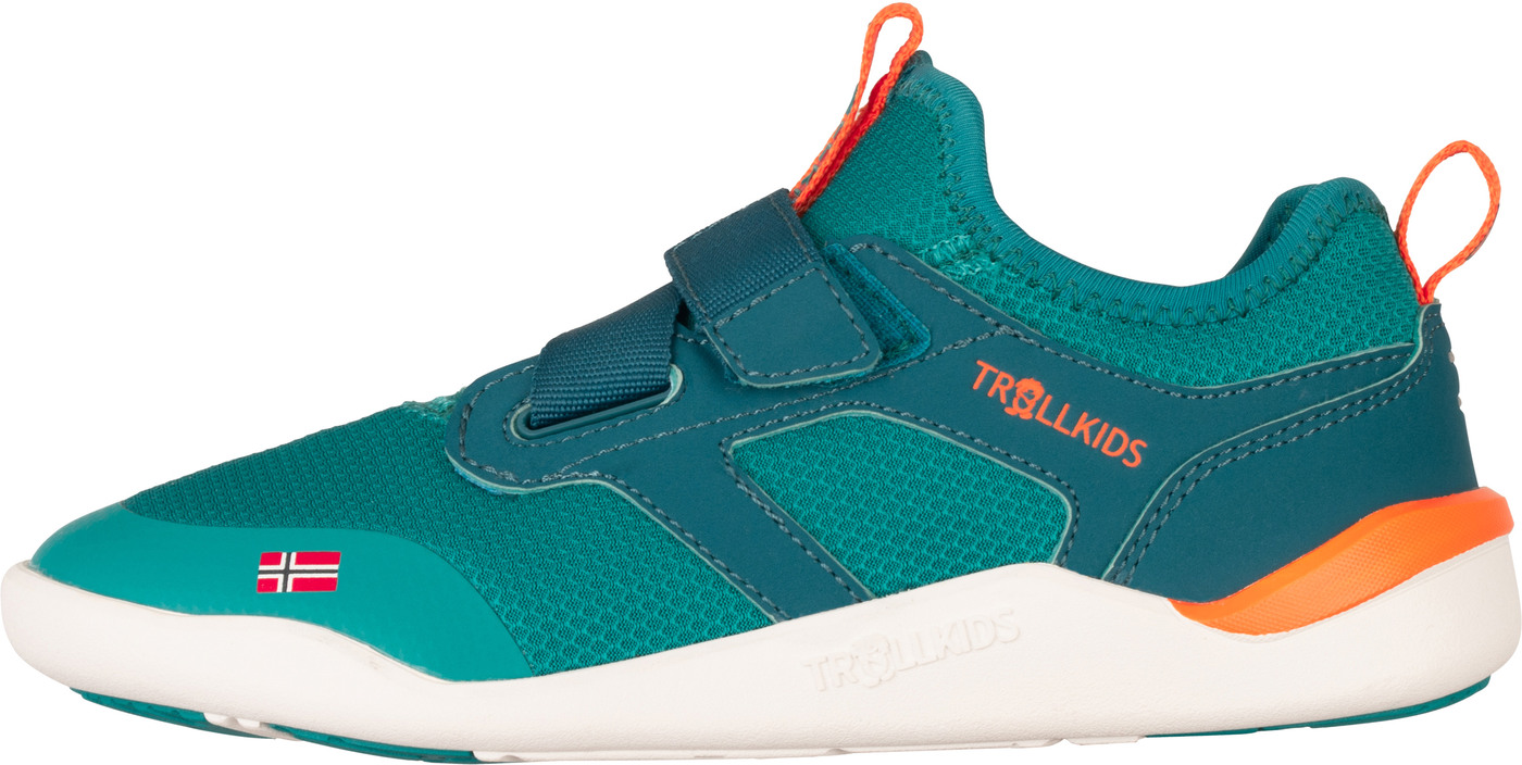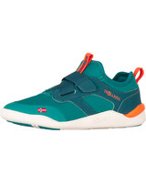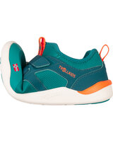 Trollkids Barfußschuh 'Sirdal Hiker Mid' mit Klettverschluss & 100% vegan - Sea Green/Lagoon Green/Sahara Sunset