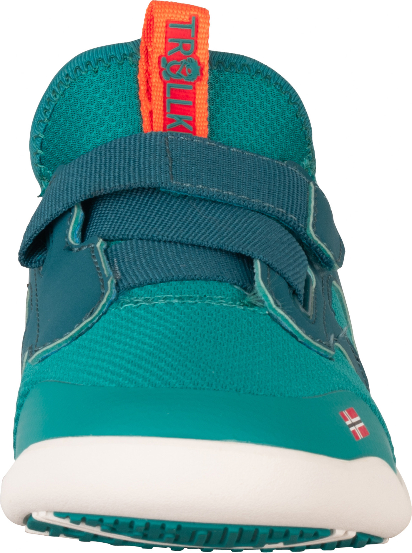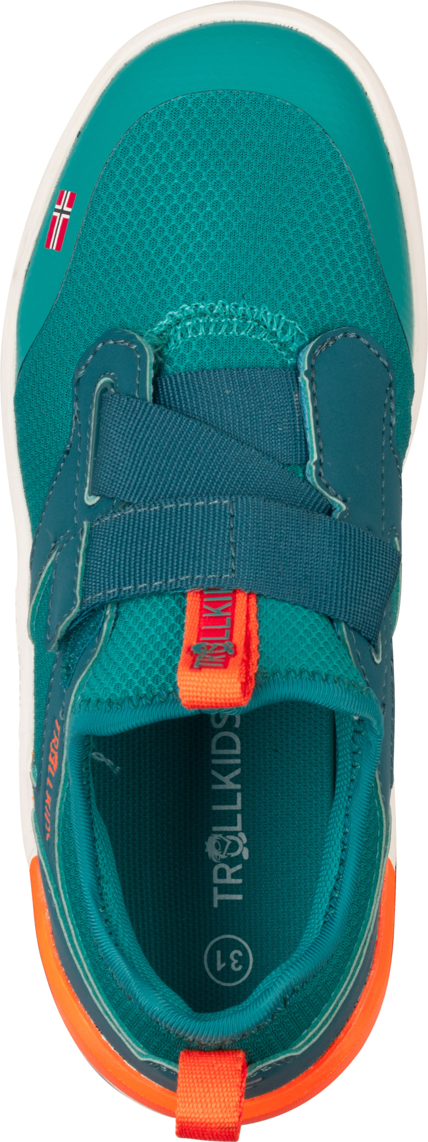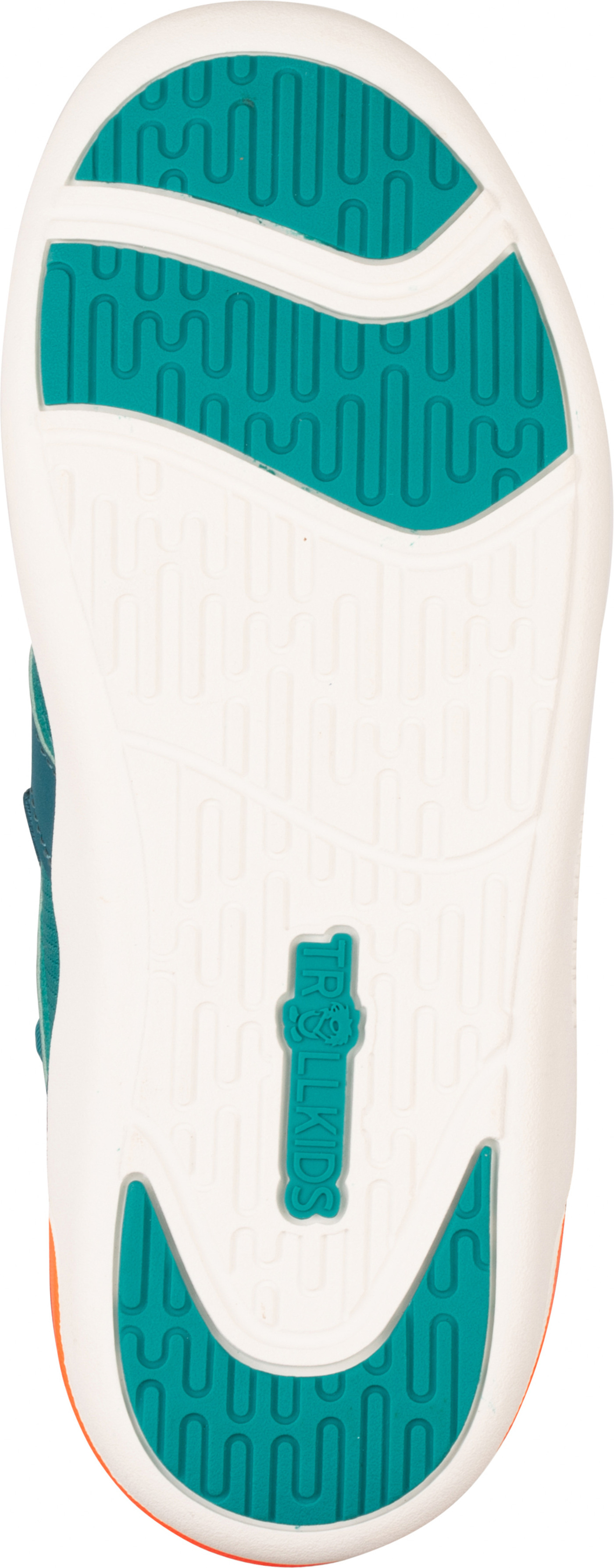 Trollkids Barfußschuh 'Sirdal Hiker Mid' mit Klettverschluss & 100% vegan - Sea Green/Lagoon Green/Sahara Sunset