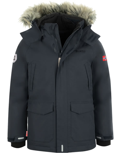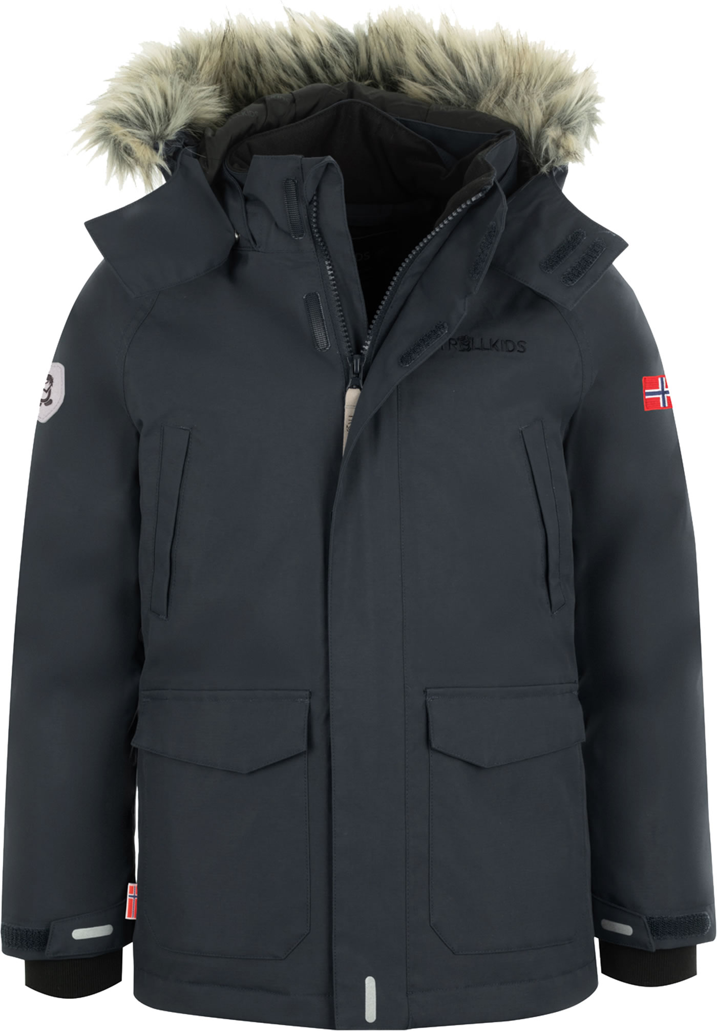 Modisch-schlicht, sehr warm und dabei hochfunktionell das ist das KIDS SPITSBERGEN JACKET von TROLLKIDS für Mädchen und Jungen. Gefüllt mit wärmender Entendaune und dabei wasserdicht und atmungsaktiv, lässt diese Jacke im Winter bei nasskaltem Wetter keine Wünsche offen. Die schlichte, einfarbige Parka-Optik und die angeschnittene, verstellbare Kapuze mit abnehmbarem Kunstfellrand machen das KIDS SPITSBERGEN JACKET zu einem Klassiker, der lange Zeit Freude bereitet und dabei perfekten Wind- und Wetterschutz garantiert. Der untere Saum kann in der Weite reguliert werden. Reflektierende Details sorgen für bessere Sichtbarkeit.