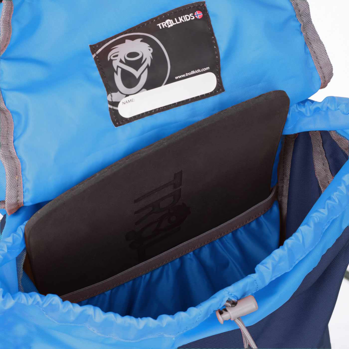 Der Toploader Tagesrucksack von TROLLKIDS ist aus robustem 600D Polyester genäht und mit einem wasserdichtem Boden, Sitzmatte und Regenhülle ausgestattet. Das Tragesystem sorgt für Komfort dank gepolsterter Rückenteile und längenverstellbarer gepolsterter Trage-Riemen. Ein Hauptfach mit Trennwand, Deckelfach mit Reißverschluss und elastische Seitentaschen sorgen für genügend Ordnungsmöglichkeiten.