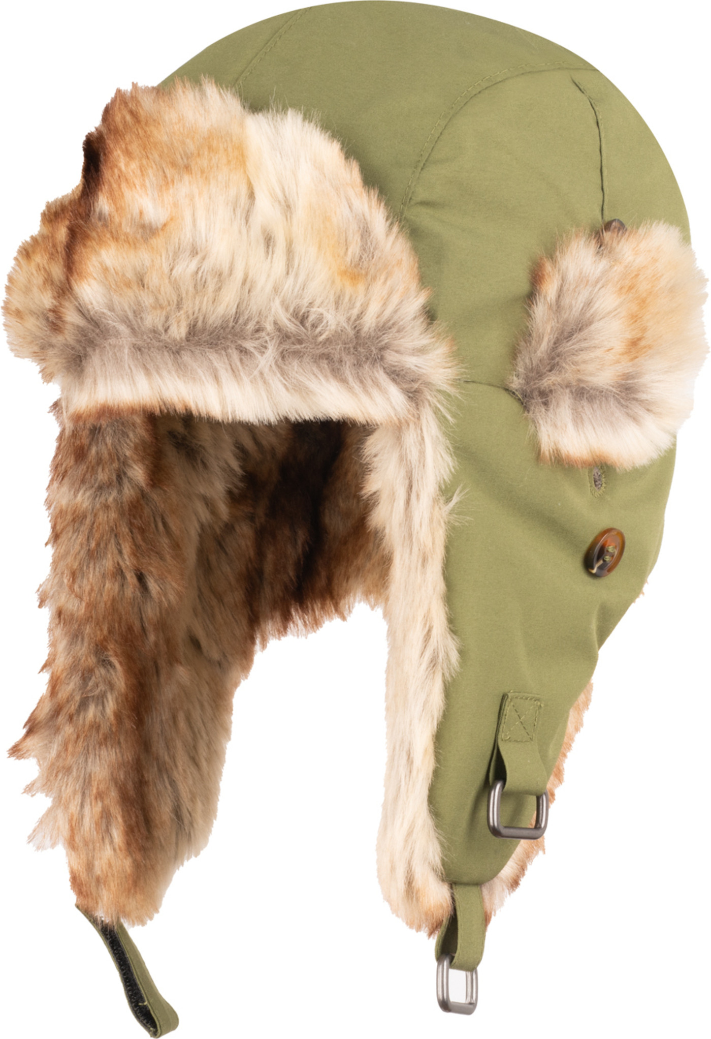 Die KIDS ISFJORD CAP ist warm mit Kunstfell gefüttert. Die charakteristischen Klappen lassen sich mit einem Klettriegel unter dem Kinn miteinander verbinden und verstellen. An den Seiten der Mütze sind kleine Ear Flaps, die man seitlich hochklappen kann. Am Hinterkopf kann die Weite der Mütze ebenfalls reguliert werden.