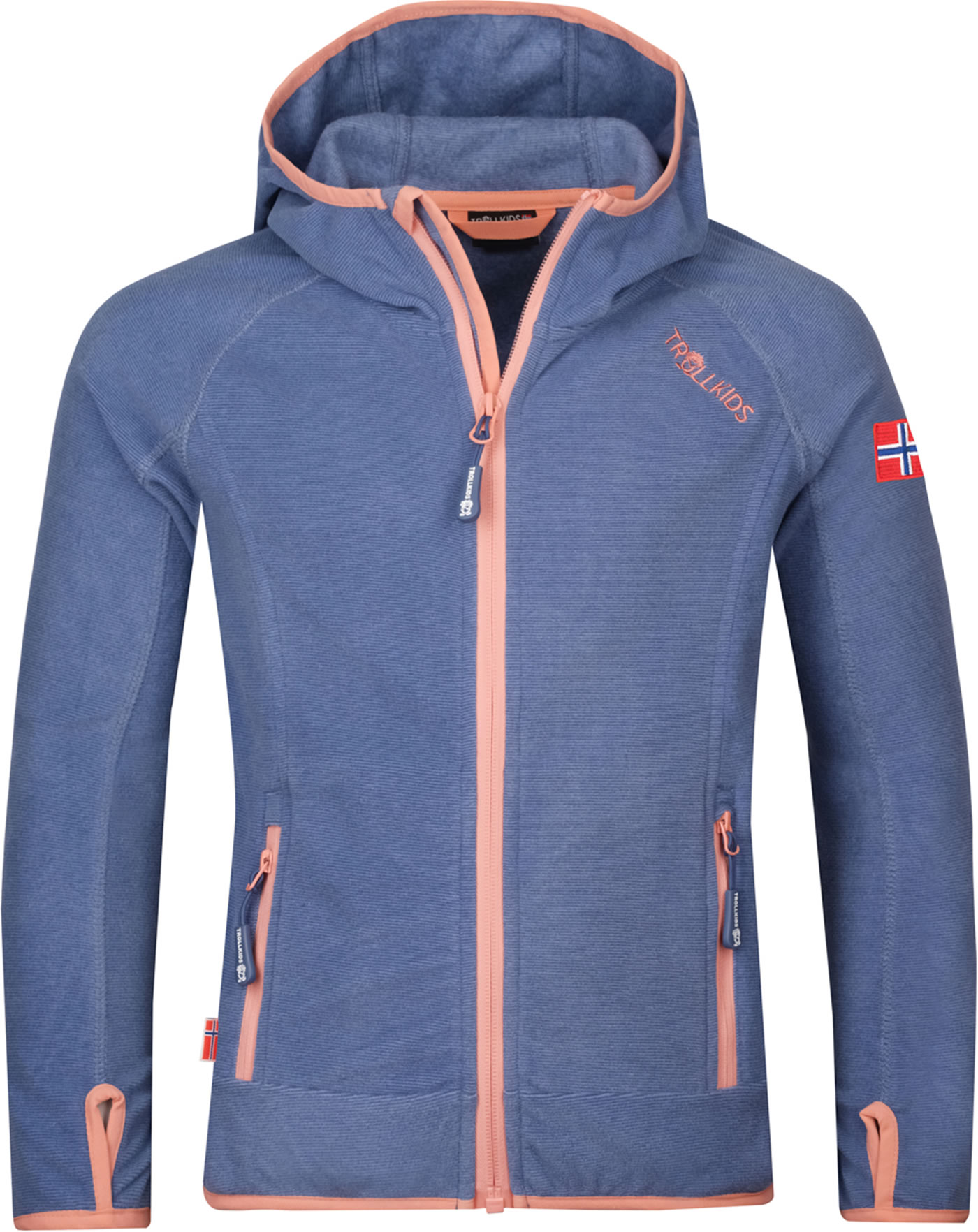 Trollkids Girls Fleece Jacke m. Kapuze SANDEFJORD - Lotus Blue/Dahlia