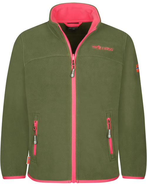 Trollkids Girls Fleece Jacket Zip-In OPPDAL JACKET XT d.olive/magenta