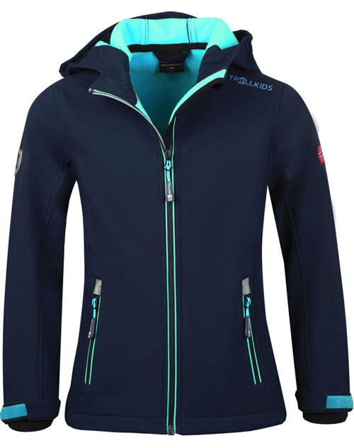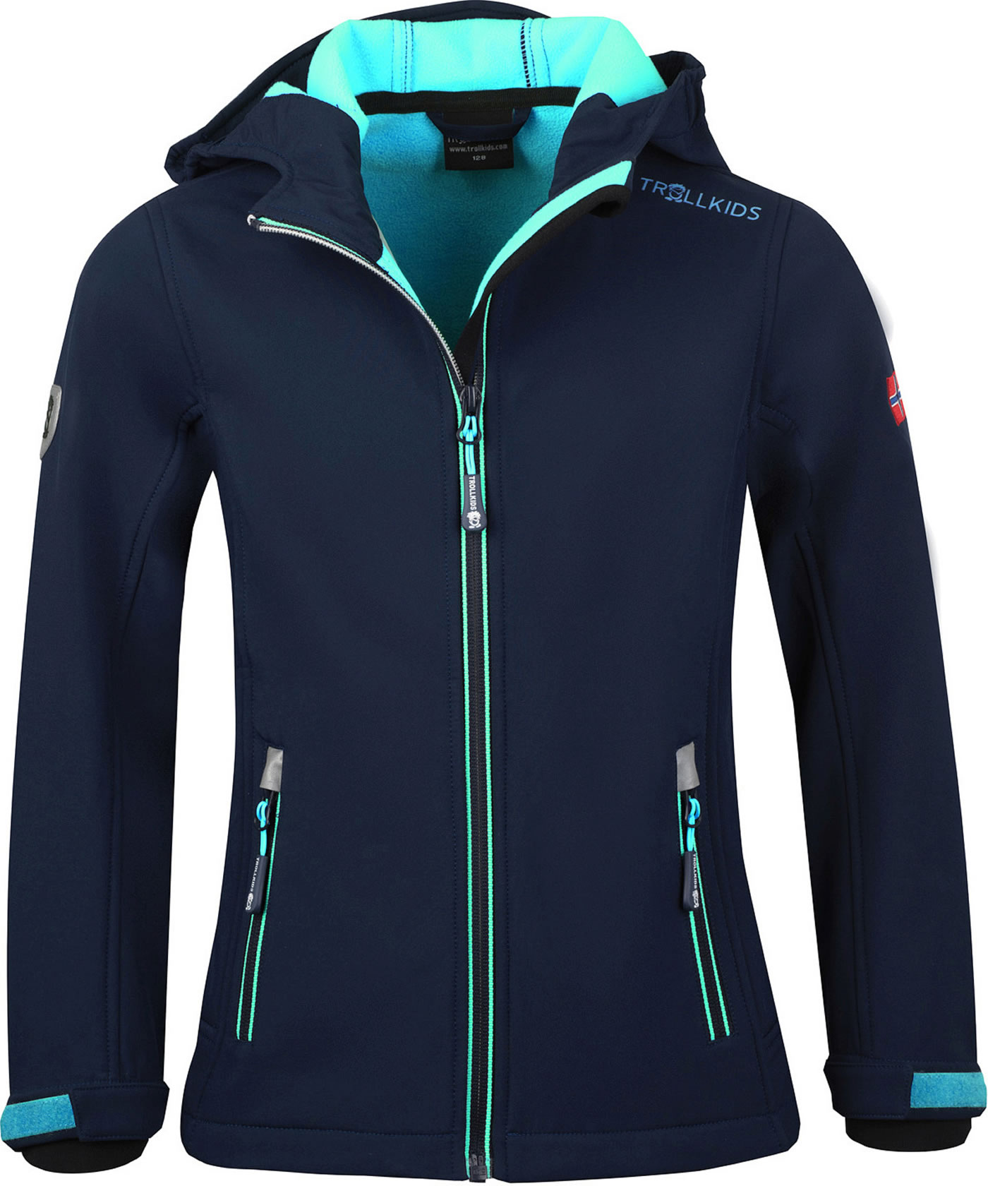 Trollkids Girls Softshell-Jacket TROLLFJORD - Navy/Mint