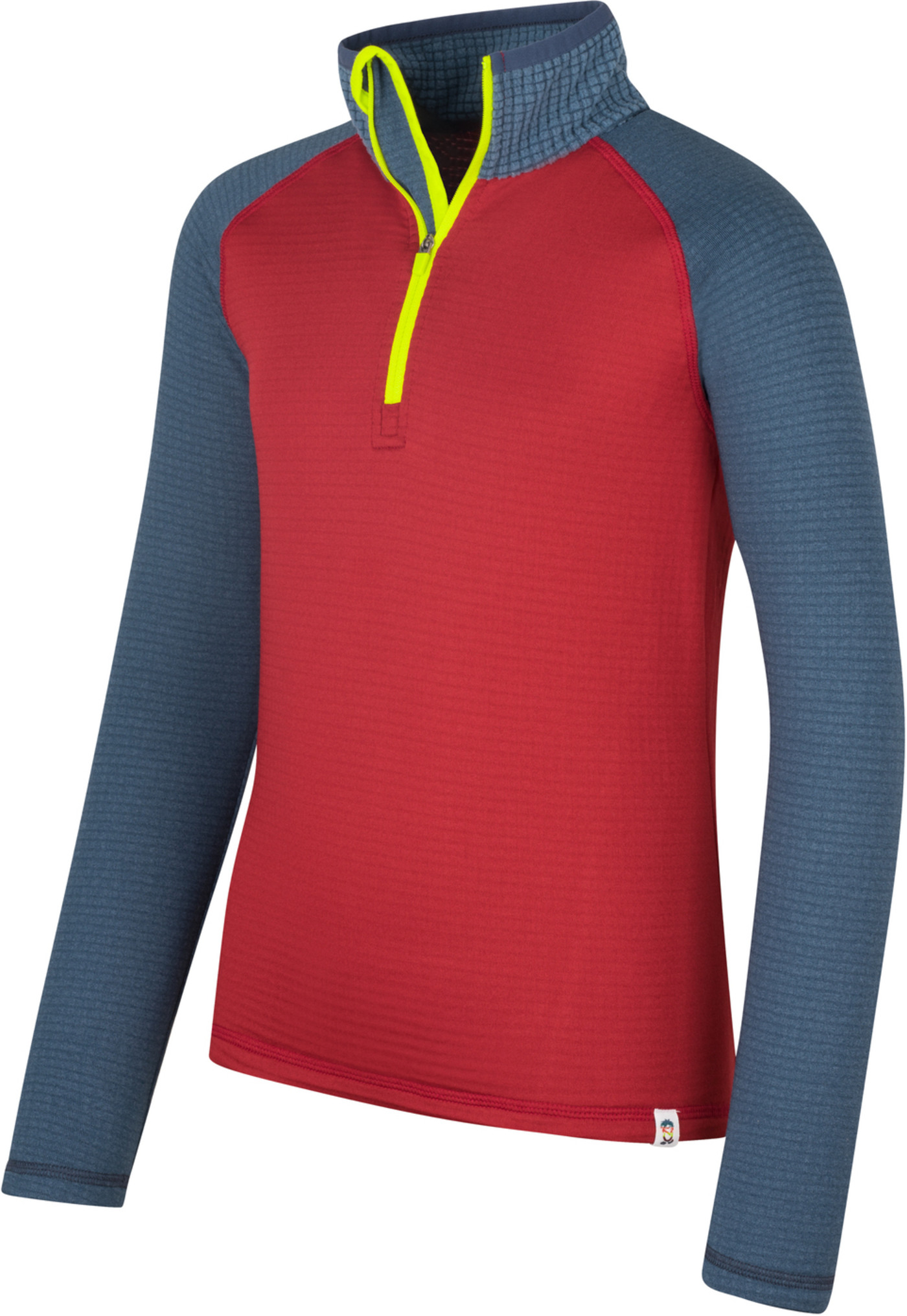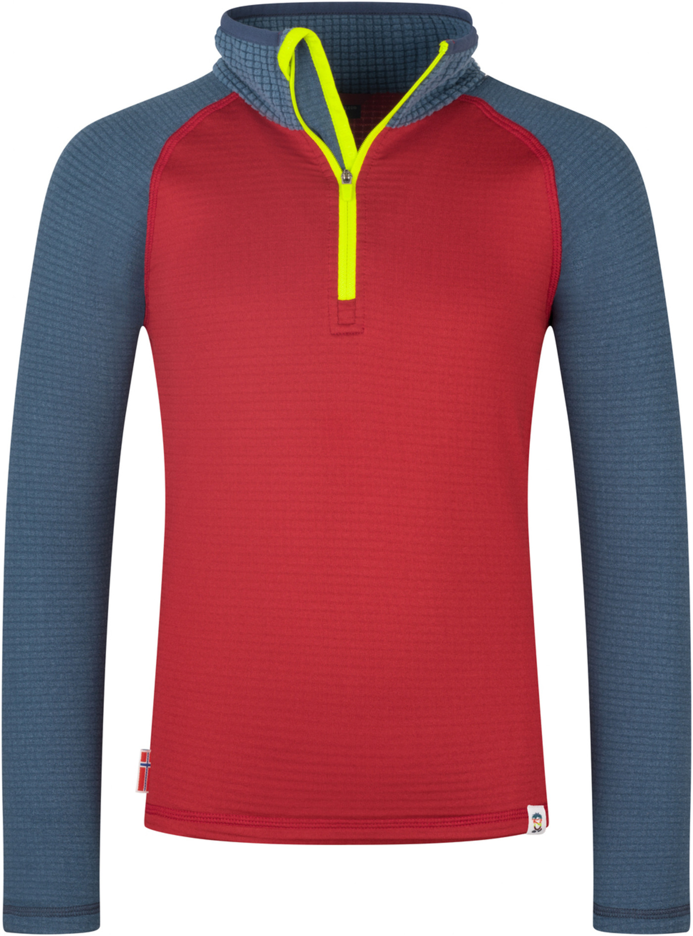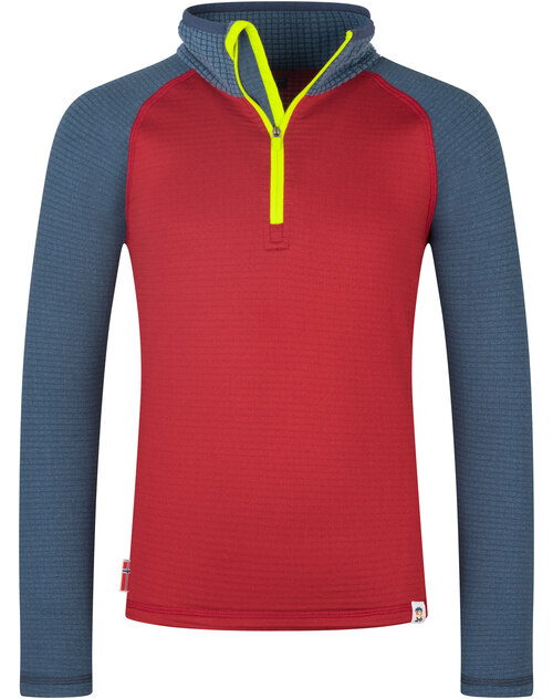 Trollkids Half-Zip-Pullover KIDS RAULAND - Carmin Red/Mystic Blue/Glow Green