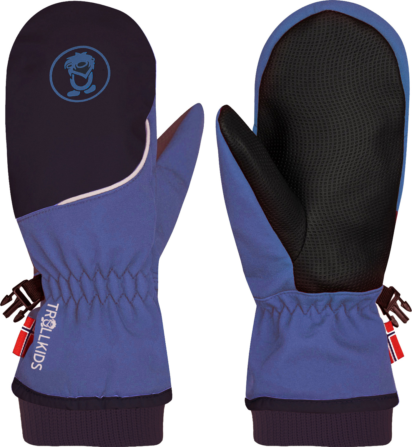 Der KIDS TROLLTUNGA MITTEN von Trollkids ist ein wasserabweisender Fäustling-Handschuh aus winddichtem, hochelastischem Softshell-Material für die Kleinsten. Mit weichem Fleece gefüttert hält er schön warm. Die Handflächen sind für besseren Grip gummiert und mit einem kleinen Verbindungsclip lässt sich das Paar aneinander befestigen.