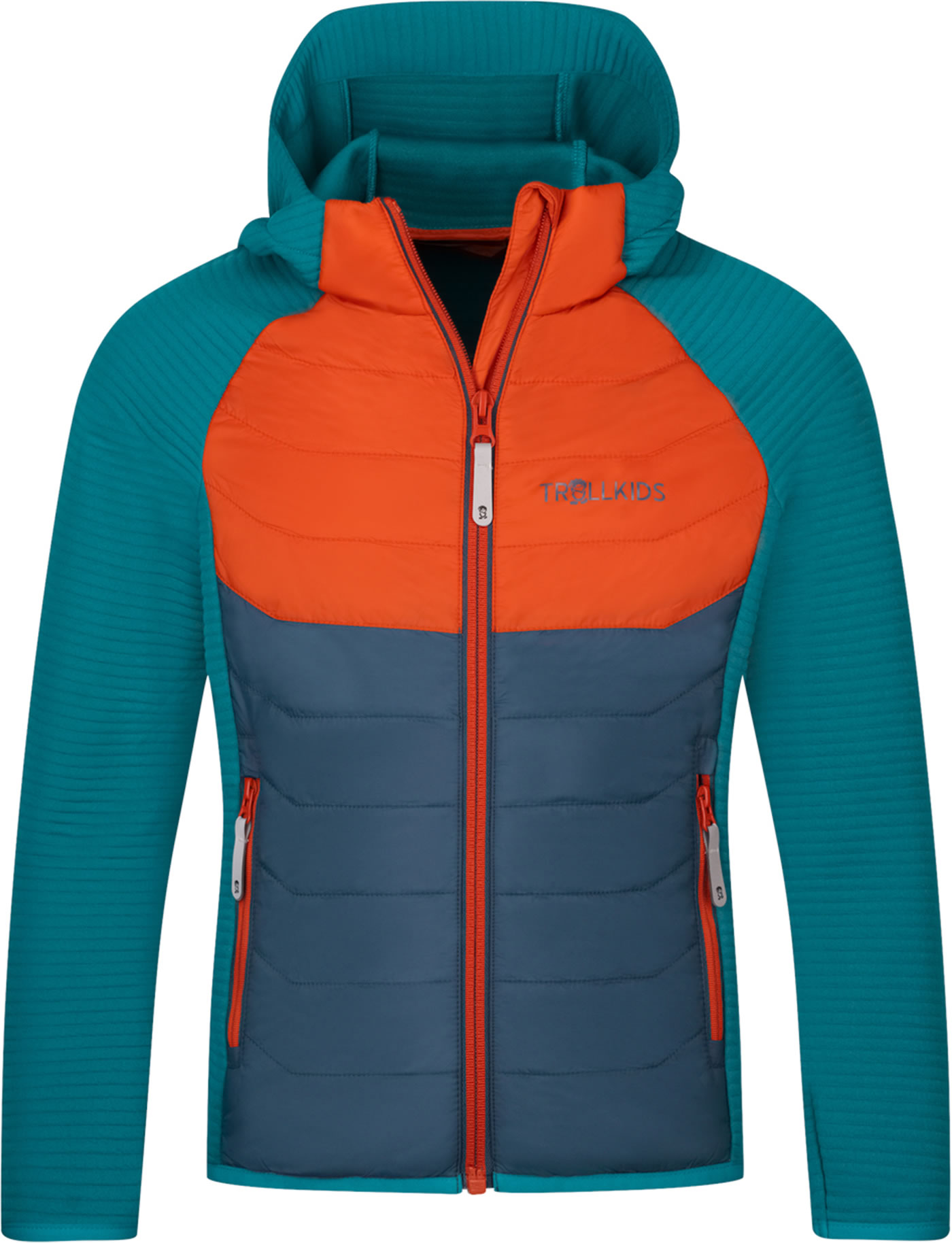 Die KIDS SIRDAL JACKET von TROLLKIDS ist eine Hybridjacke aus dem charakteristischen "Dymanic Unbrushed" Fleecematerial in Kombination mit einer wattierten Partie im Frontbereich. Für einen sportlichen Look sorgen die Raglanärmel, und in den beiden seitlichen Reißverschluss-Taschen lassen sich Kleinigkeiten sicher verstauen. Die leichte, angeschnittene Kapuze ist ebenfalls aus "Dynamic Unbrushed" Fleecestoff. Die Zipper sind aus reflektierendem Material. All das macht die KIDS SIRDAL JACKET zu einem unkomplizierten Begleiter an kühleren Tagen.