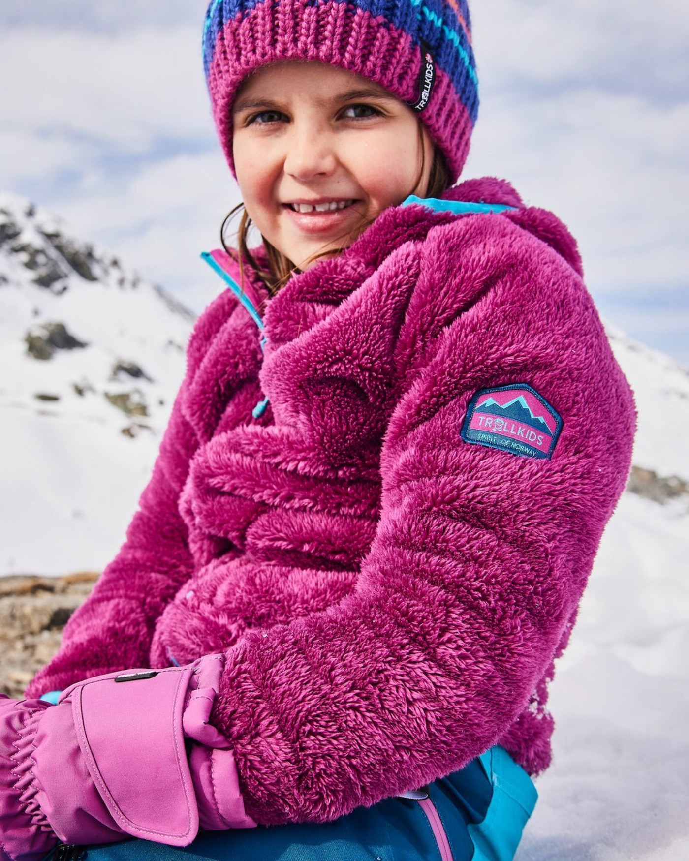 Diese kuschelige Teddy-Jacke GIRLS BORGUND JACKET XT von Trollkids ist aus Highloft-Fleece in besonders hochwertiger Qualität gefertigt. 🙂