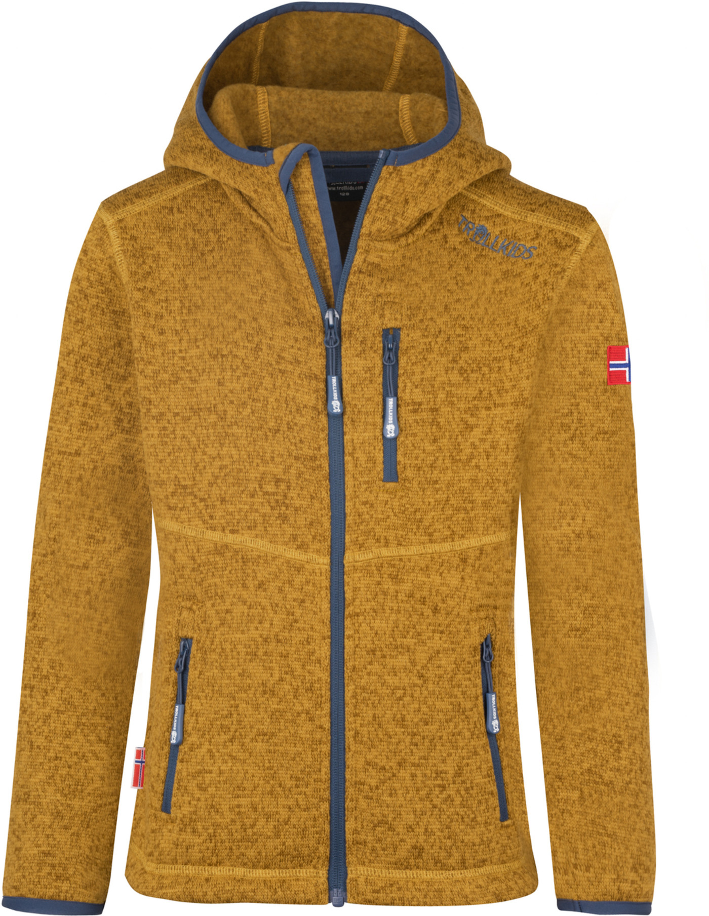 Die farbenfrohe Kapuzenjacke KIDS JONDALEN JACKET XT von Trollkids aus warmen Strickfleece ist nicht nur ein perfekter Begleiter für die Übergangszeit, sondern hält in Kombination mit einer Winterjacke auch an kalten Wintertagen angenehm warm.