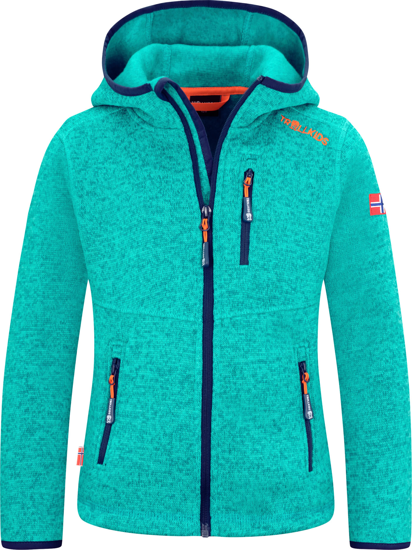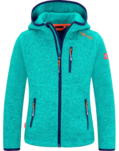 Die farbenfrohe Kapuzenjacke GIRLS JONDALEN JACKET XT von TROLLKIDS aus warmen Strickfleece ist nicht nur ein perfekter Begleiter für die Übergangszeit, sondern hält in Kombination mit einer Winterjacke auch an kalten Wintertagen angenehm warm.