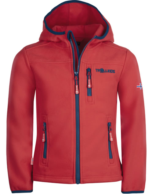 Trollkids Kapuzen-Jacke Fleece KIDS STAVANGER JACKET spicy red/petrol