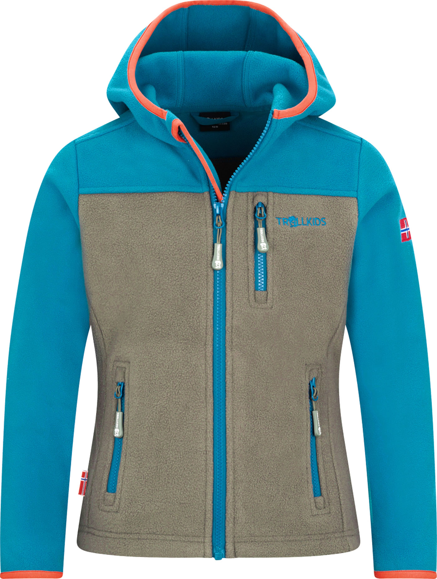 Trollkids Kapuzenjacke Fleece KIDS STAVANGER brown/blue/glow orange