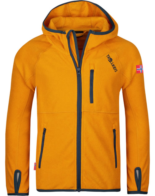 Trollkids Kids Fleece Jacke m. Kapuze SANDEFJORD golden yellow