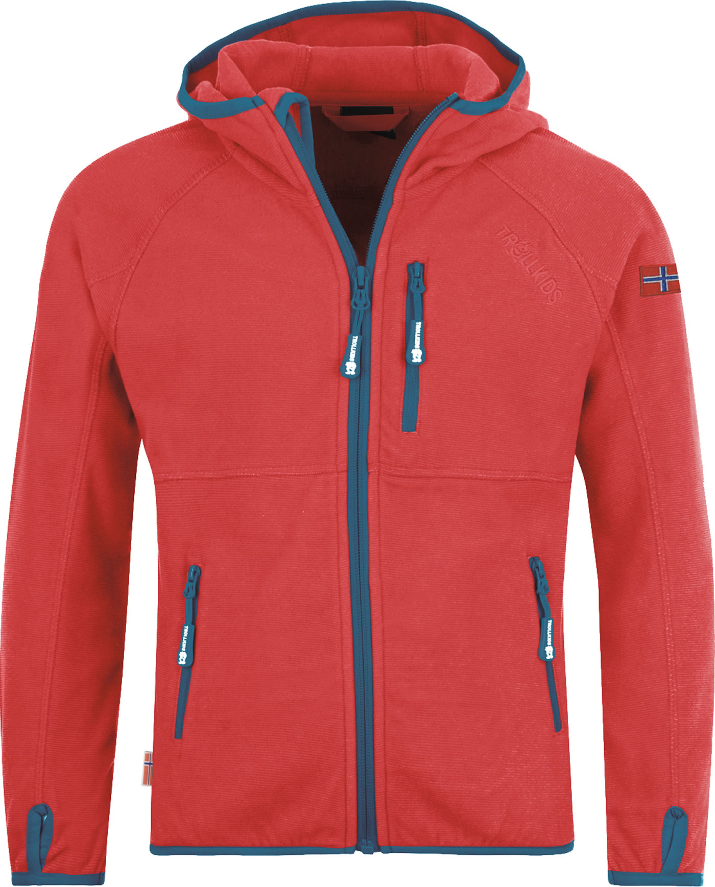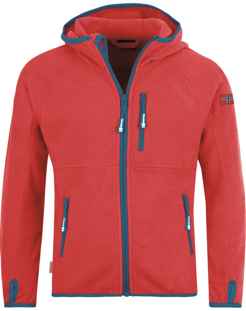 Trollkids Kids Fleece Jacke m. Kapuze SANDEFJORD spicy red/petrol