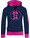 Ihr Frontreißverschluss, die Bündchen und das Kapuzeninnenfutter sind farblich abgesetzt.