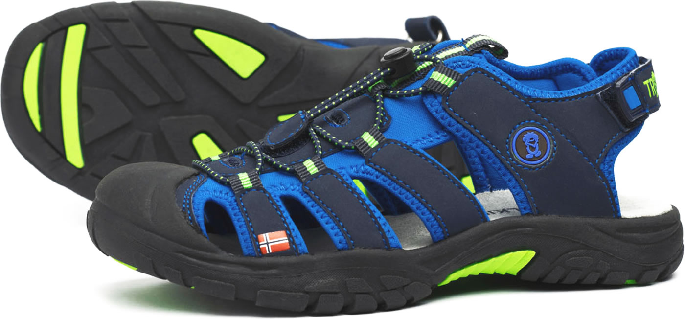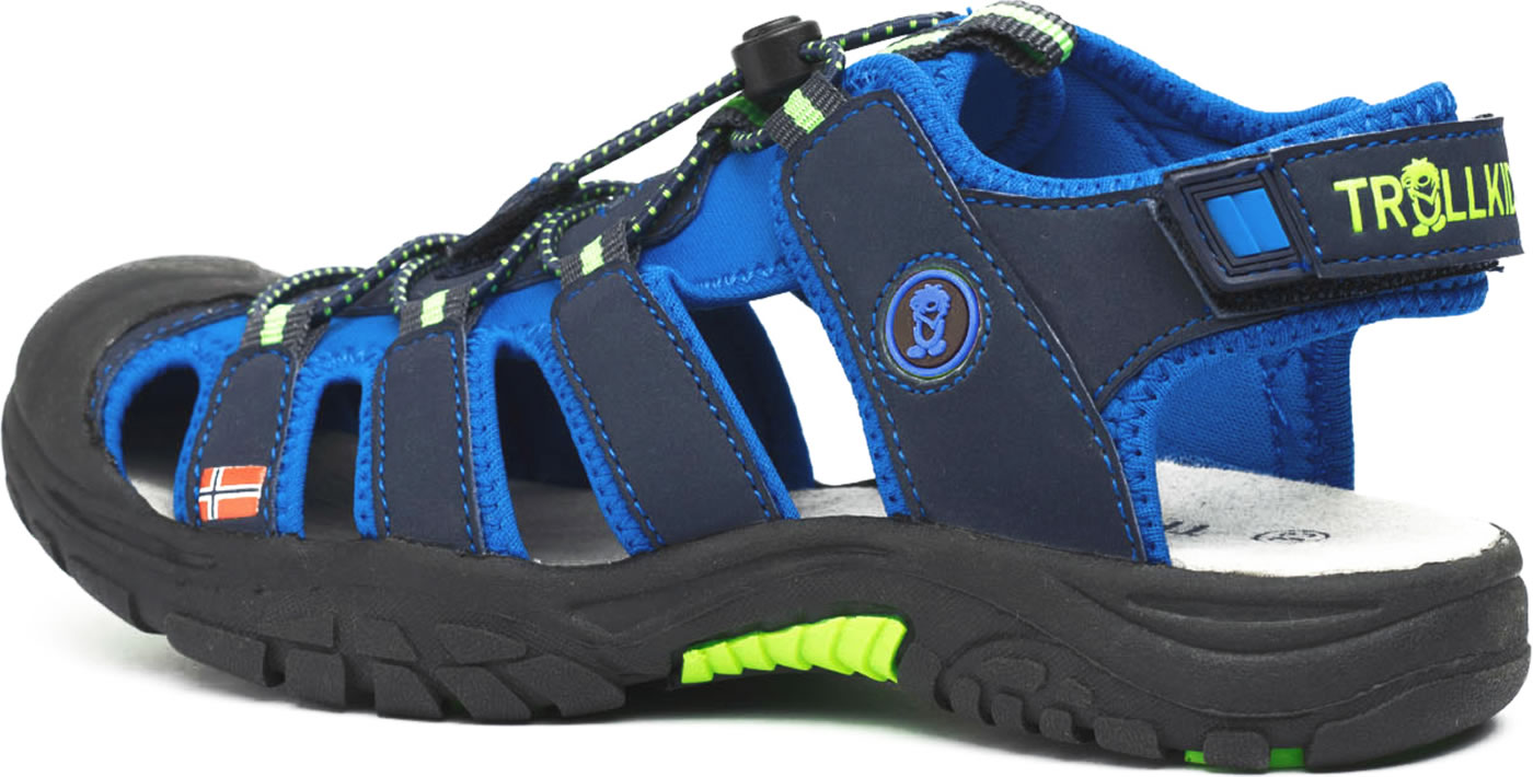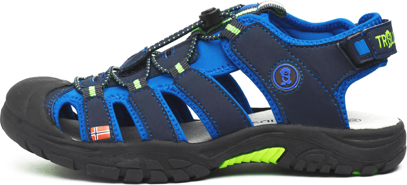 Die leichte Sandale von TROLLKIDS schließt sicher mit Klettverschluss und elastischen Schnürsenkeln.