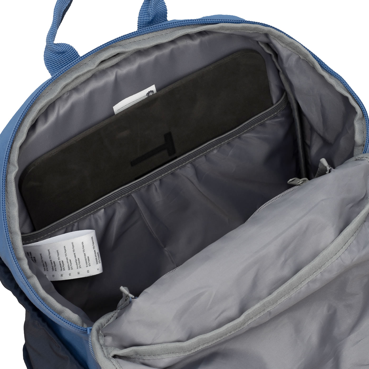 Im Inneren gibt es ein Reißverschlussfach, eine Schlüsselschlaufe und ein Namensschild zur Beschriftung.