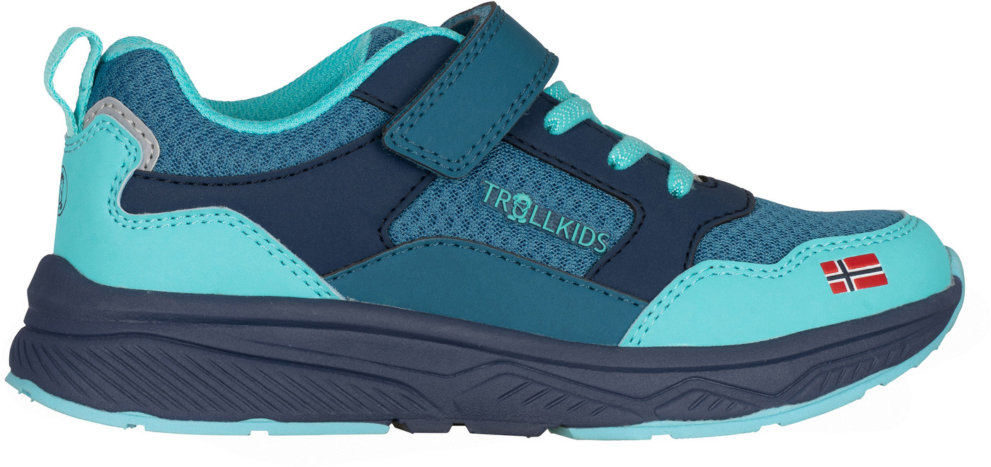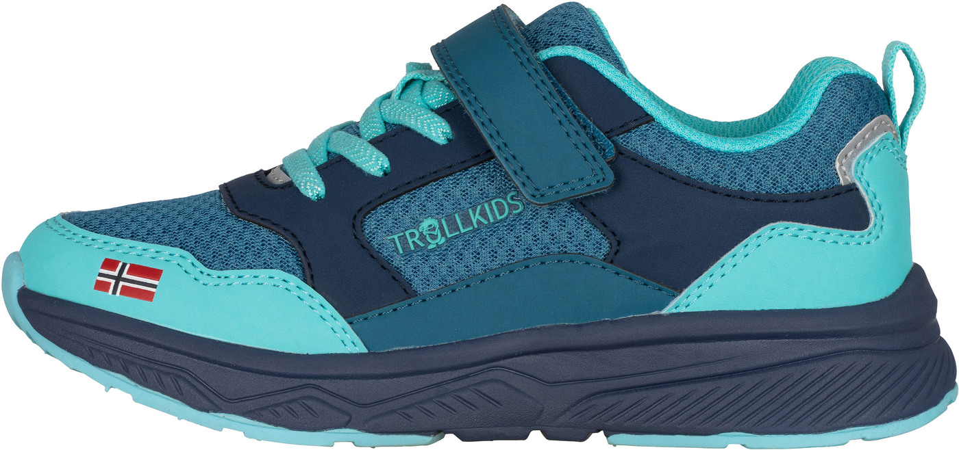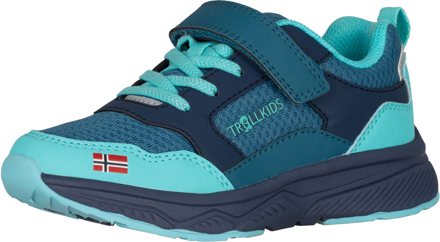 Der stabile und bequeme Sneaker 'Haugesund' von Trollkids wird mit seinem leichten Gewicht und der praktischen Kombination aus Klettverschluss und Elastik-Schnürsenkeln zum idealen Begleiter für aktive Kinder. 🤸 ☀