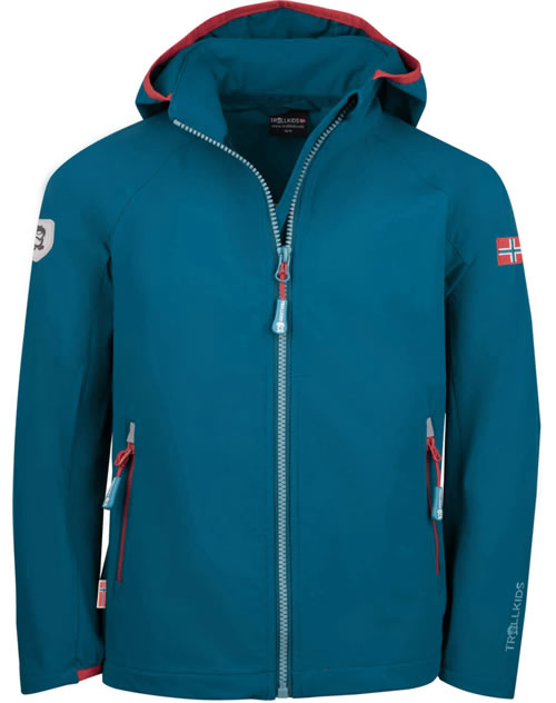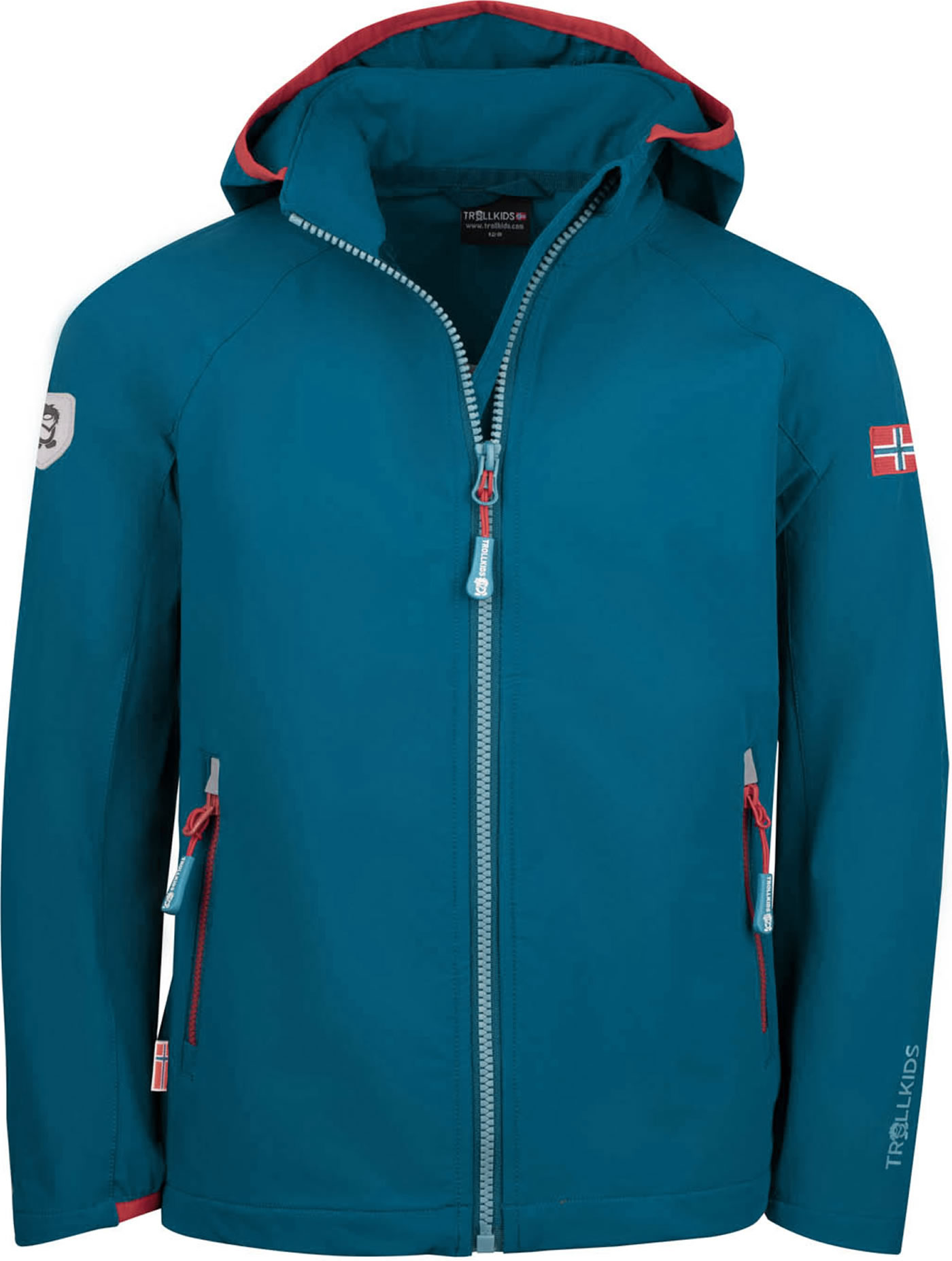 Trollkids Kids Softshell-Jacke mit Kapuze KVALVIKA - Petrol/Spicy Red