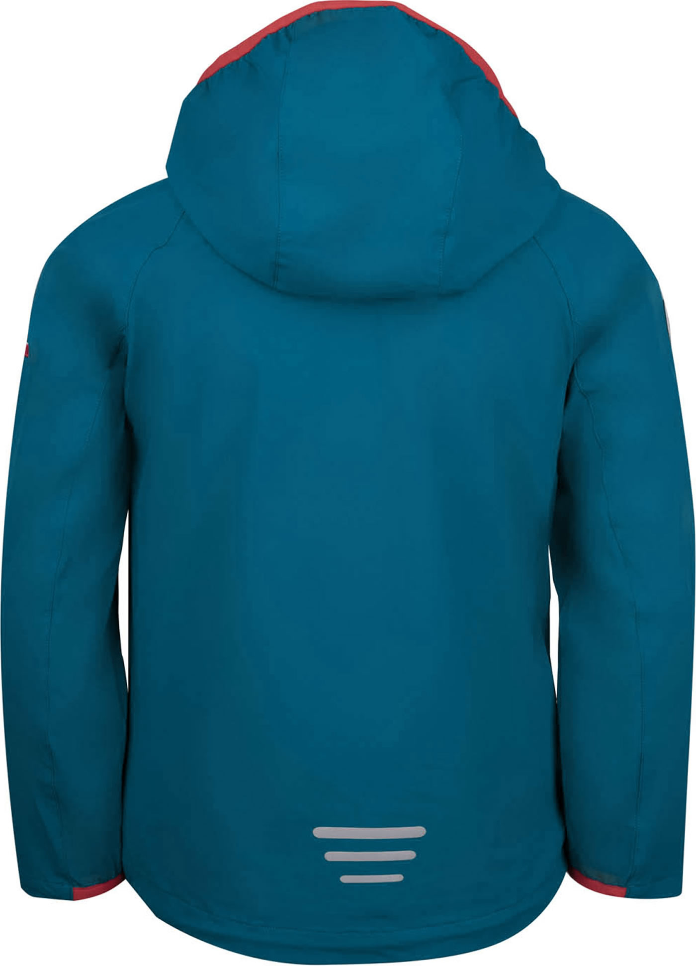 Die Jacke Kvalvika von TROLLKIDS ist eine leichte, ungefütterte Softshell-Jacke, die außer dezenter, reflektierender Details an den Ärmeln und auf der Rückseite schlicht einfarbig gehalten ist.
