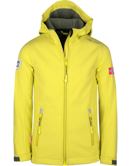Trollkids Kids Softshell-Jacket TROLLFJORD hazy yellow/clay green