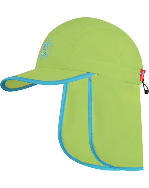 Trollkids Kids Summercap mit Nackens. TROLL XT UPF 50+ kiwi/vivid blue