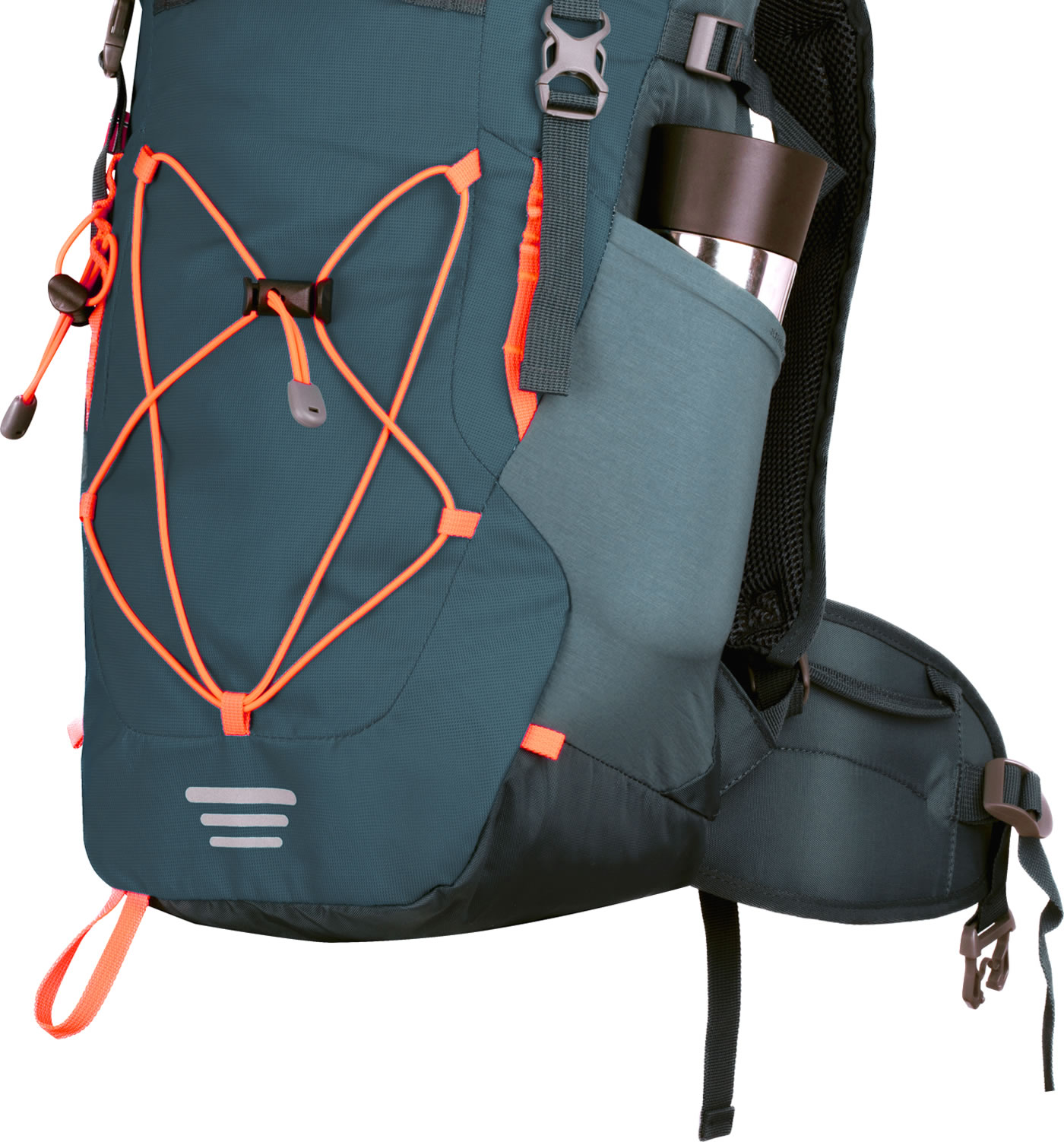 • Trekkingstock-Befestigung und Schlaufen zur Befestigung der Ausrüstung