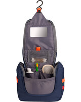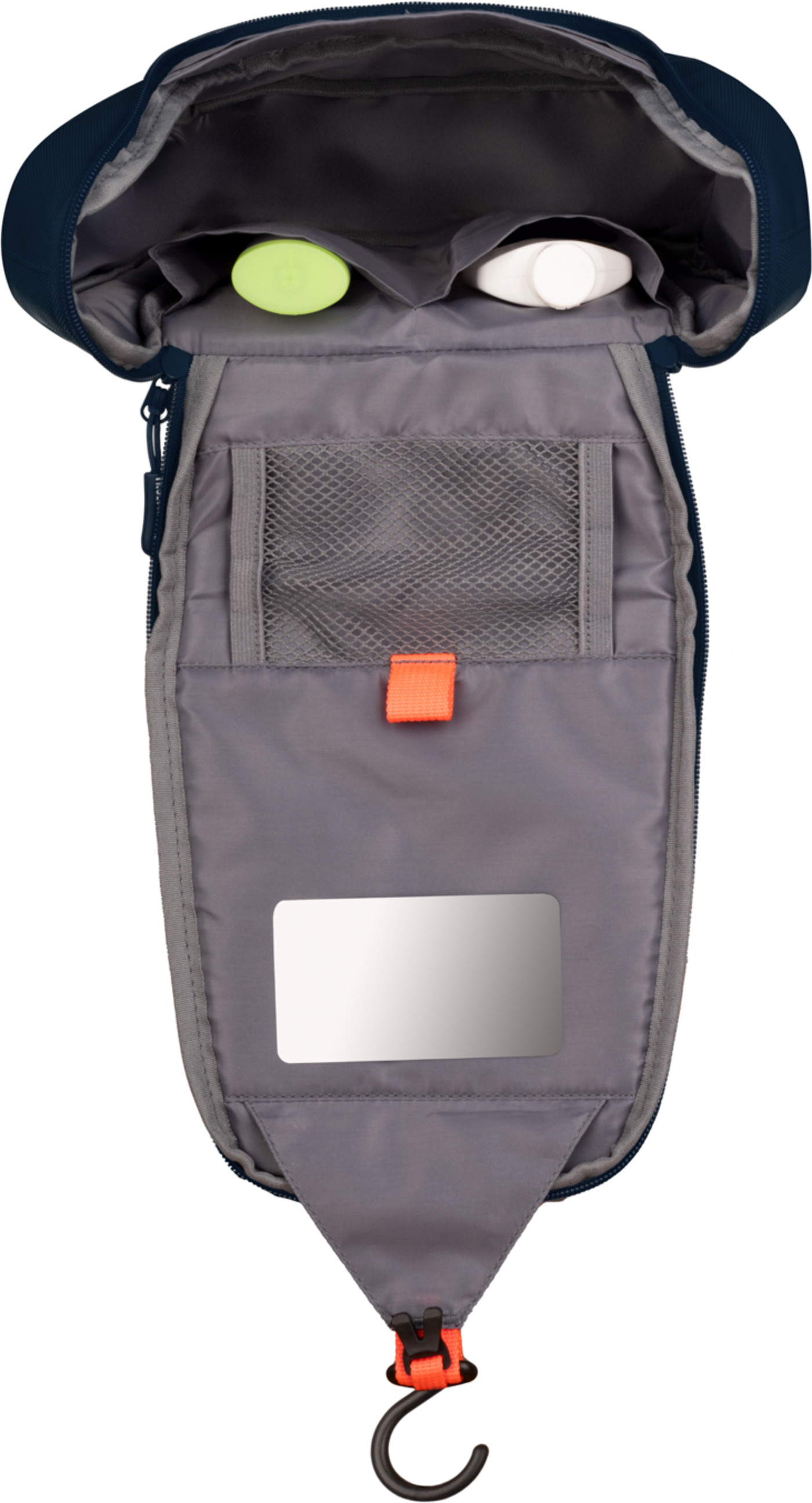 Ein großes, leicht zugängliches Hauptfach mit Rundum-Reißverschluss, innere Einsteckfächer, ein Haken zum Aufhängen mit zusätzlichem Handtuchhaken sowie ein kleiner Spiegel machen ihn zum idealen Begleiter für Zuhause oder die große Reise.