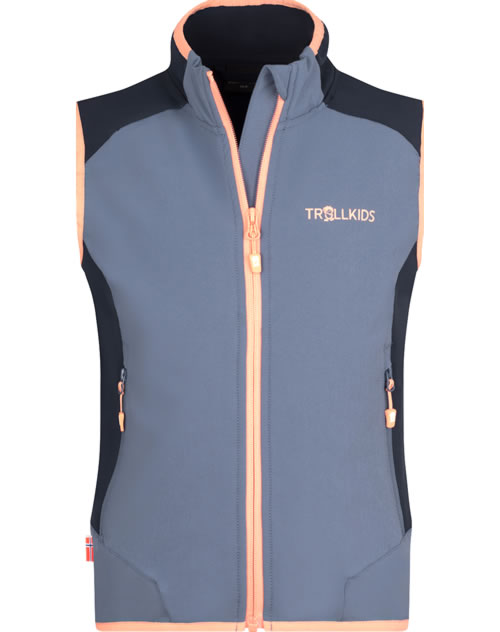 Die KIDS BALESTRAND VEST von TROLLKIDS ist eine sehr leichte Weste aus Active Stretch Material, dessen besondere Eigenschaften hier voll zur Geltung kommen: Der eng gewebte “Double Weave“ Stoff macht die Weste windabweisend, bleibt dabei jedoch sehr atmungsaktiv. Zum hohen Komfort trägt auch der Anteil an Elastan bei. Zwei Reißverschlusstaschen bieten Platz für Kleingkeiten.