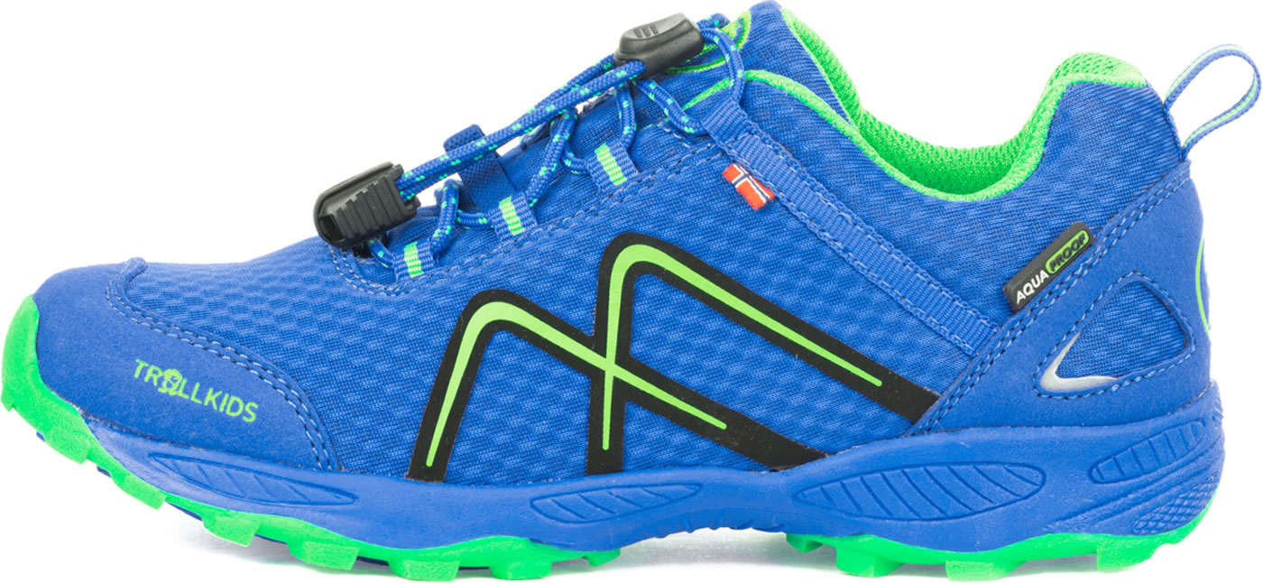 Der KIDS NORDLAND HIKER LOW von TROLLKIDS ist ein leichter und bequemer Wanderschuh. Die Wanderschuhe aus eine atmungsaktivem Material sind dank eingearbeiteter AQUAPROOF-Membran wasserdicht. Dank der Schnellschnürung ist der Halbschuh kinderleicht an- und auszuziehen. Die flexible und abriebfeste Gummillaufsohle mit griffigem Profil sorgt für guten Halt auf verschiedenen Untergründen und angenehmes Gehen. Zehen- und Fersenpartie sind verstärkt und bieten so zusätzlichen Schutz.