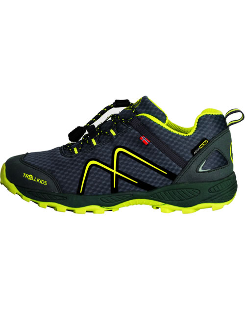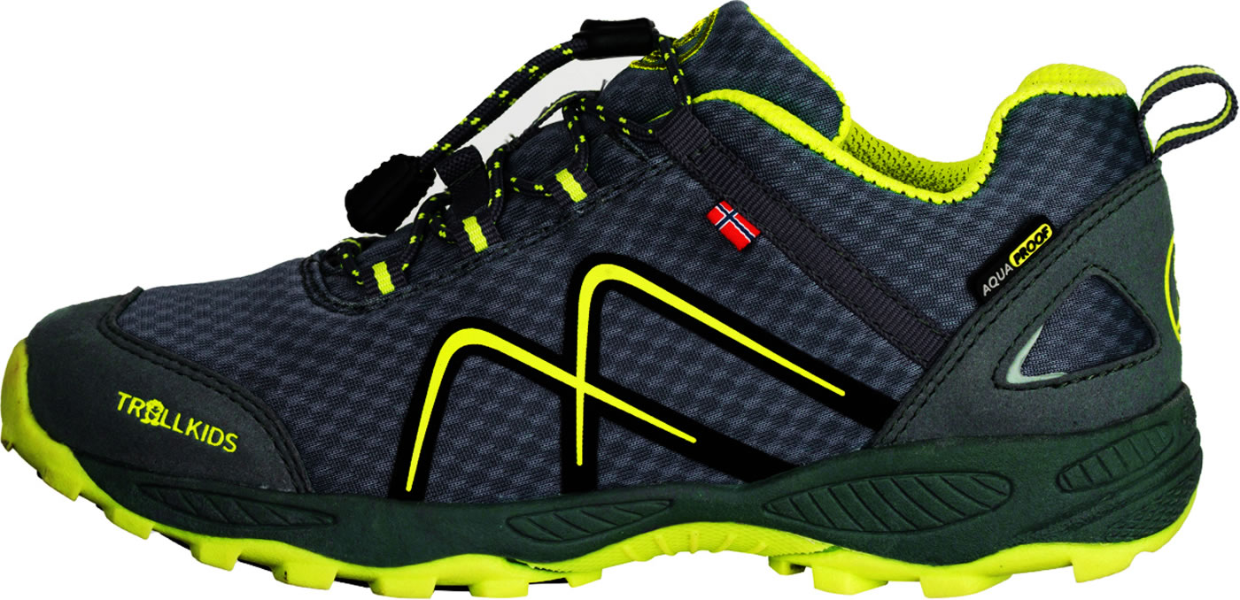 Der KIDS NORDLAND HIKER LOW von TROLLKIDS ist ein leichter und bequemer Wanderschuh. Die Wanderschuhe aus eine atmungsaktivem Material sind dank eingearbeiteter AQUAPROOF-Membran wasserdicht. Dank der Schnellschnürung ist der Halbschuh kinderleicht an- und auszuziehen. Die flexible und abriebfeste Gummillaufsohle mit griffigem Profil sorgt für guten Halt auf verschiedenen Untergründen und angenehmes Gehen. Zehen- und Fersenpartie sind verstärkt und bieten so zusätzlichen Schutz.