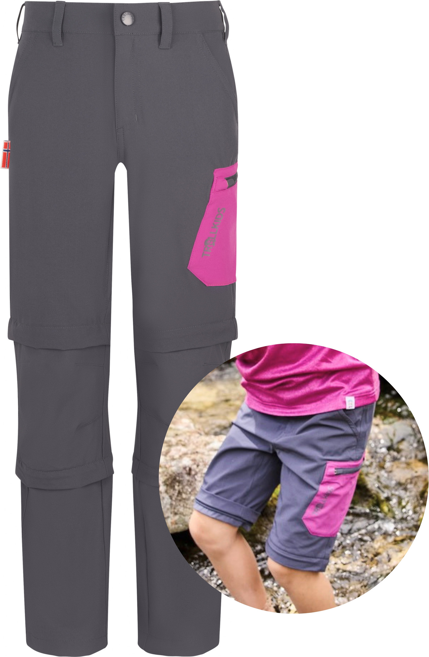 Trollkids Outdoor-Hose 'Preikestolen Double Zip-Off' - Graphite/Fresh Berry