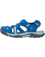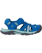 Sie ist eine robuste Allround-Sandale mit elastischer Schnürung und geschlossener Zehenpartie mit verlängerter Gummisohle als Stoßschutz.