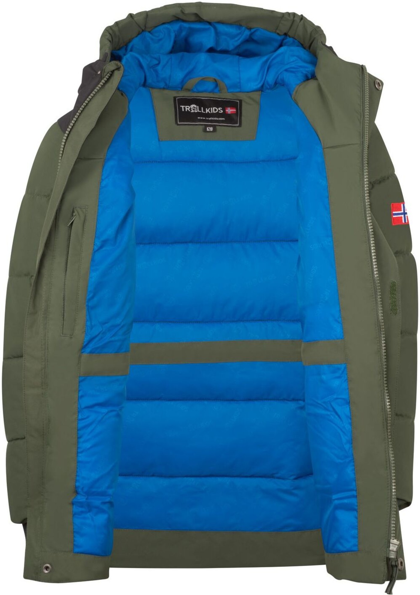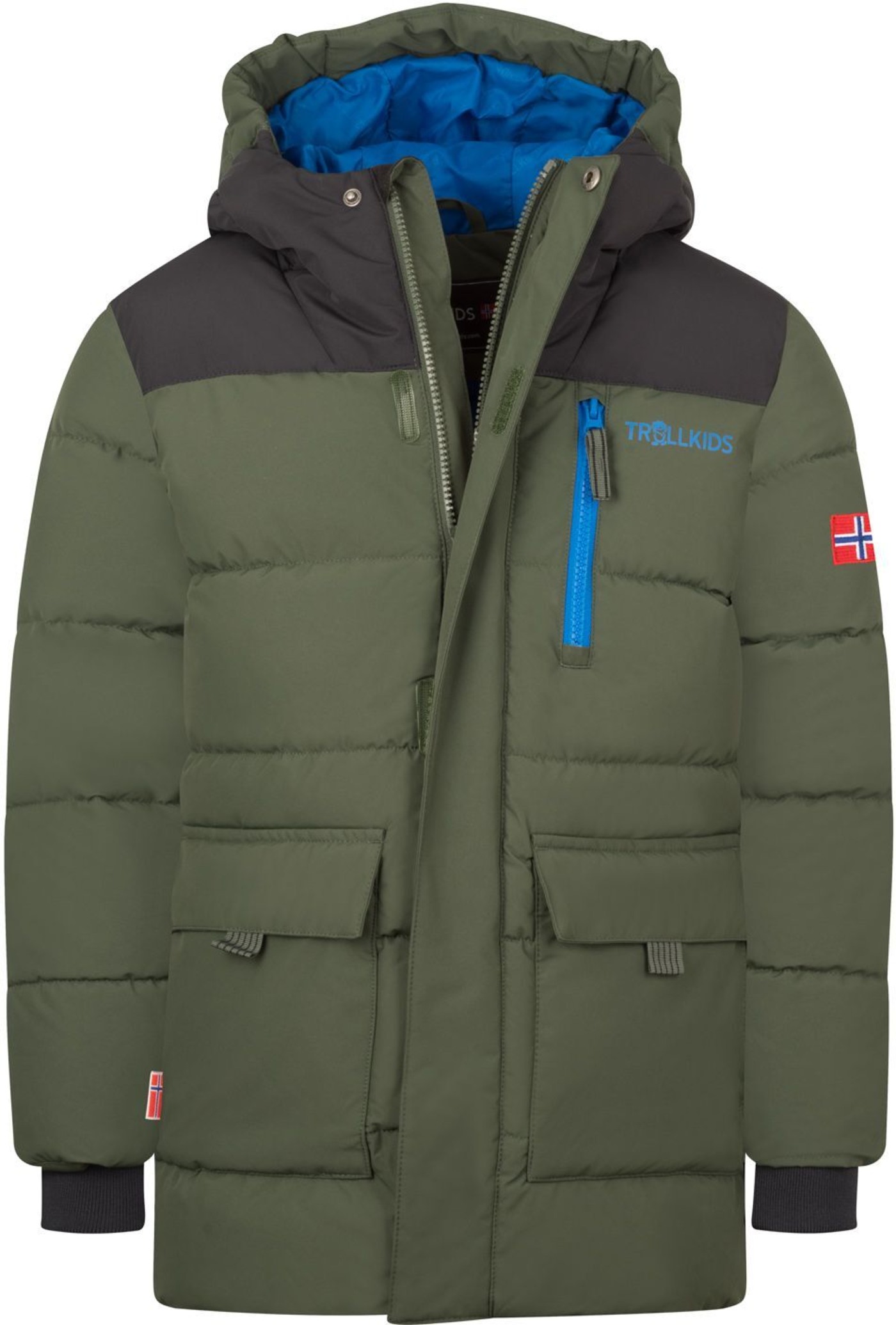 Dieser warm wattierte und etwas länger geschnittene Parka KIDS TORSVAG ist geradelinig geschnitten, aus robustem, glattem Oberstoff und hat eine feste, per Klettverschluss verstellbare Kapuze.