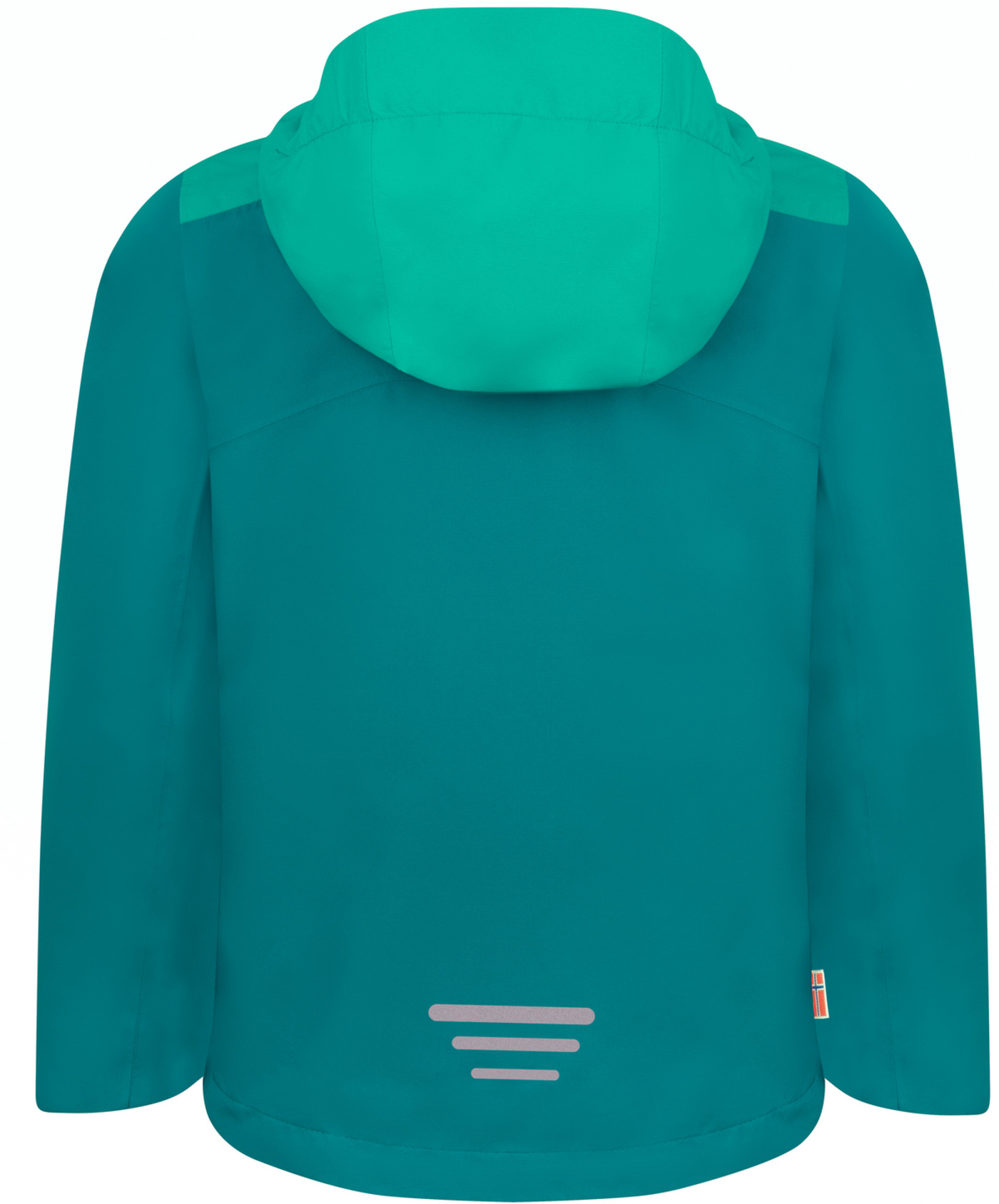 Die angeschnittene Kapuze schützt den Kopfbereich vor Kälte und Nässe und ist am Hinterkopf mit einem Klettverschluss verstellbar.