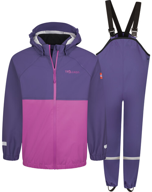 Jacke und Hose sind aus gummiertem, PCF-freiem Material gefertigt und haben verklebte Nähte, sodass Wasser und Matsch keine Chance haben.