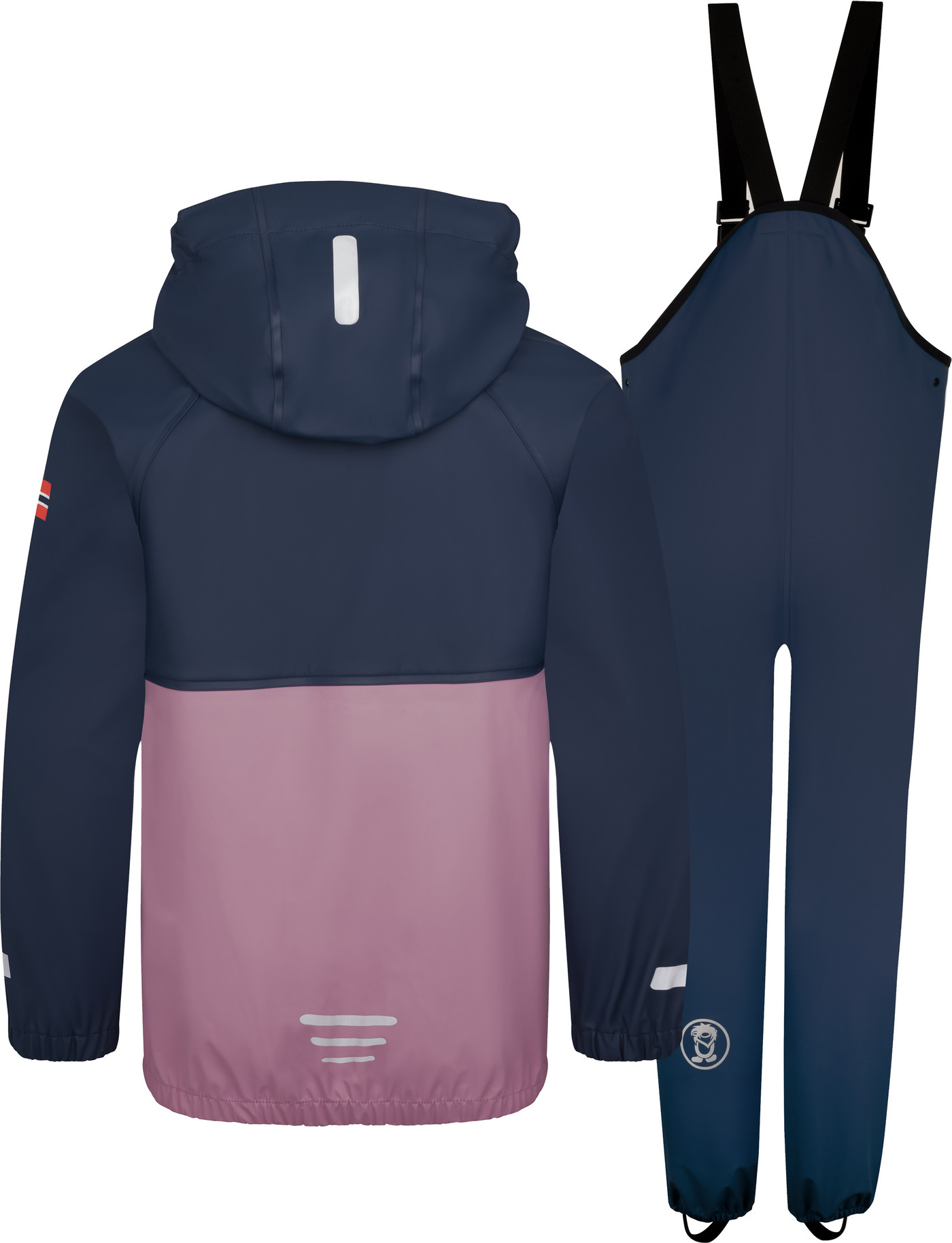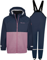 Jacke und Hose sind aus gummiertem, PCF-freiem Material gefertigt und haben verklebte Nähte, sodass Wasser und Matsch keine Chance haben.