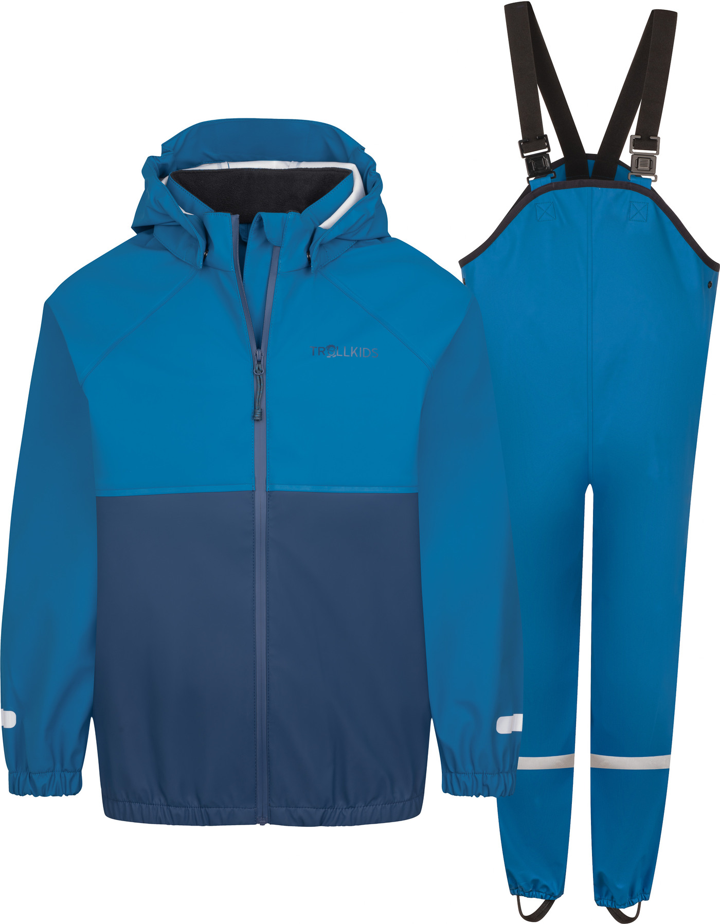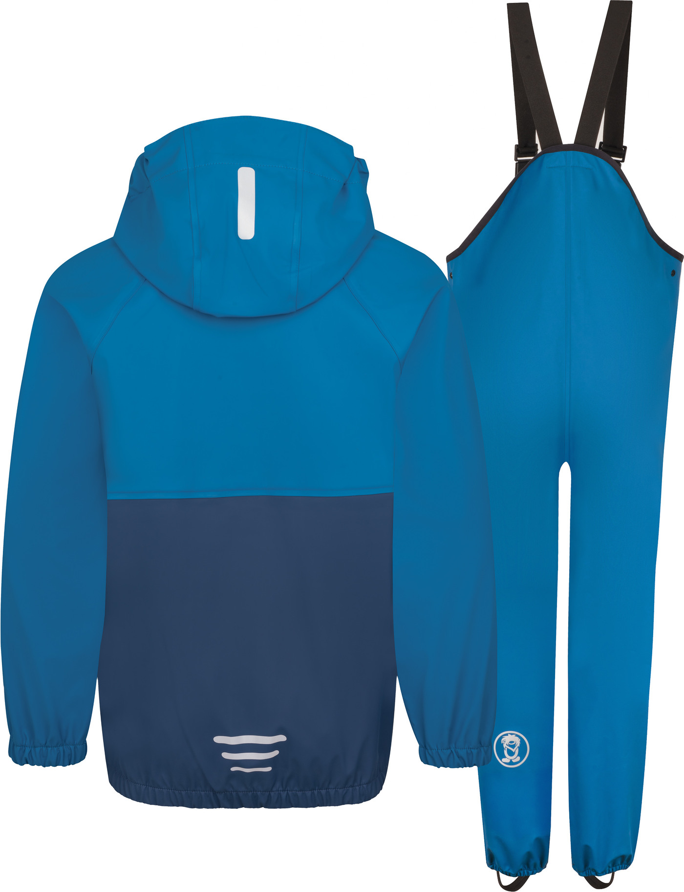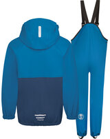 Jacke und Hose sind aus gummiertem, PCF-freiem Material gefertigt und haben verklebte Nähte, sodass Wasser und Matsch keine Chance haben.