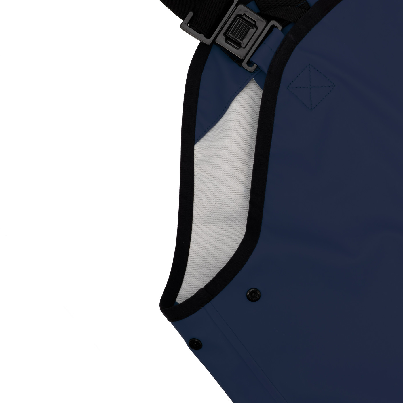 Sie ist aus gummiertem, PCF-freiem Material gefertigt und hat verklebte Nähte, sodass Wasser und Matsch keine Chance haben.