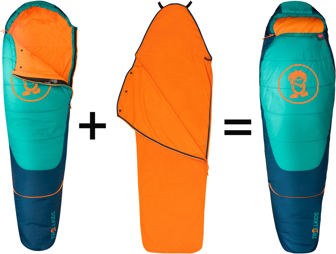Der mitwachsende Schlafsack KIDS FEMUND 3in1 SLEEPING BAG von TROLLKIDS besteht aus einem Außen- und einem herausnehmbaren Innenschlafsack.