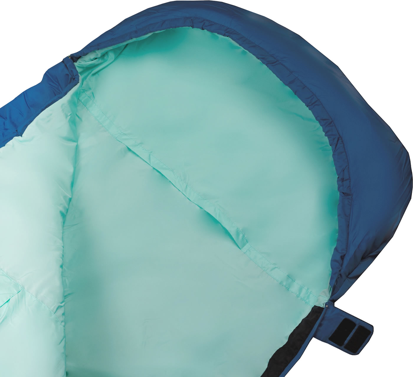 Die hochbauschige Polyfaser-Füllung sorgt für zuverlässige Wärme, der Kordelzug am Kopf und der Fuß-Reißverschluss ermöglichen individuelle Anpassung.