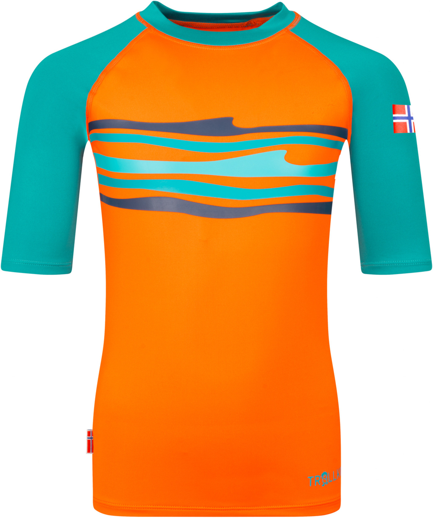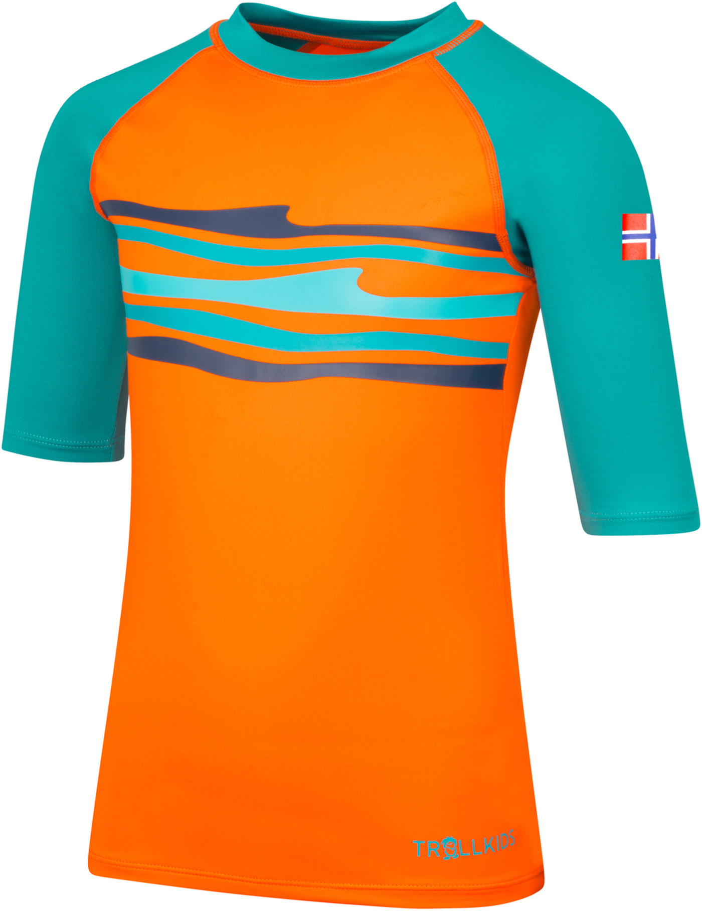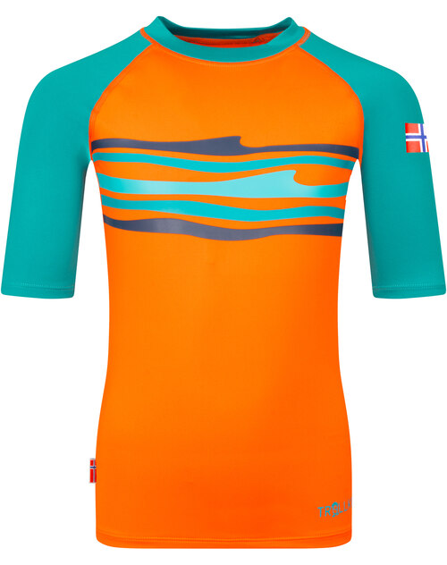 Trollkids Schwimm-Shirt HAUKLAND T UPF 50+ - Bright Orange/Lake Blue