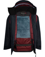 Die Kapuze passt sich dank eines Klettverschlusses gut an den Kopf an, und der hohe Kragen mit weichem Futter schützt vor Wind und Kälte.