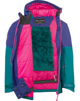 Weitere Ausstattungsdetails sind die Reißverschluss-Ärmeltasche für den Skipass, der Schneefang sowie ein besonders wärmender Highloft-Fleece-Einsatz innen am Rücken.
