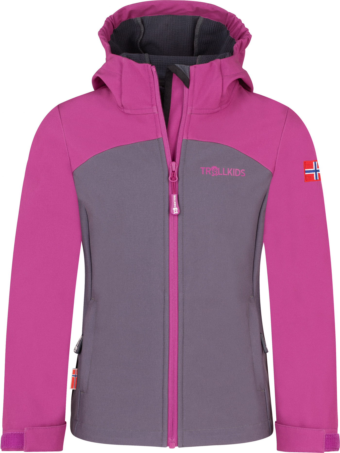 Die wasserabweisende und winddichte Softshell-Jacke 'Girls Kristiansand Jacket XT' von Trollkids hält mit einem Futter aus weichem Waffelfleece angenehm warm. 🥰