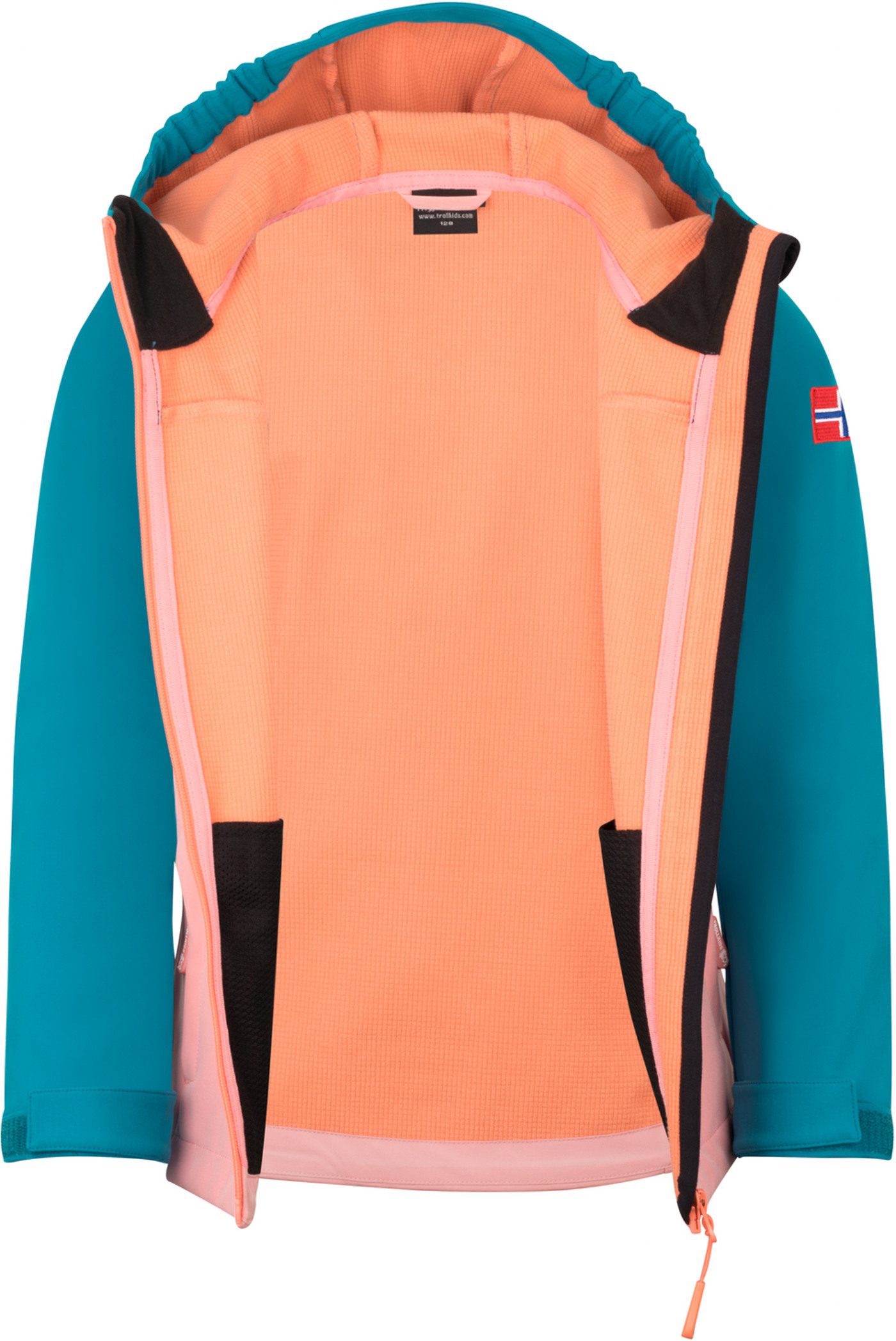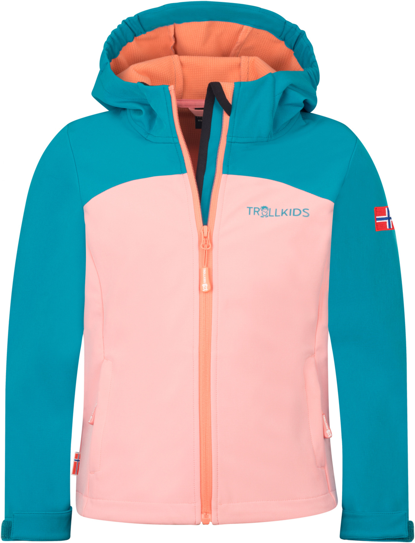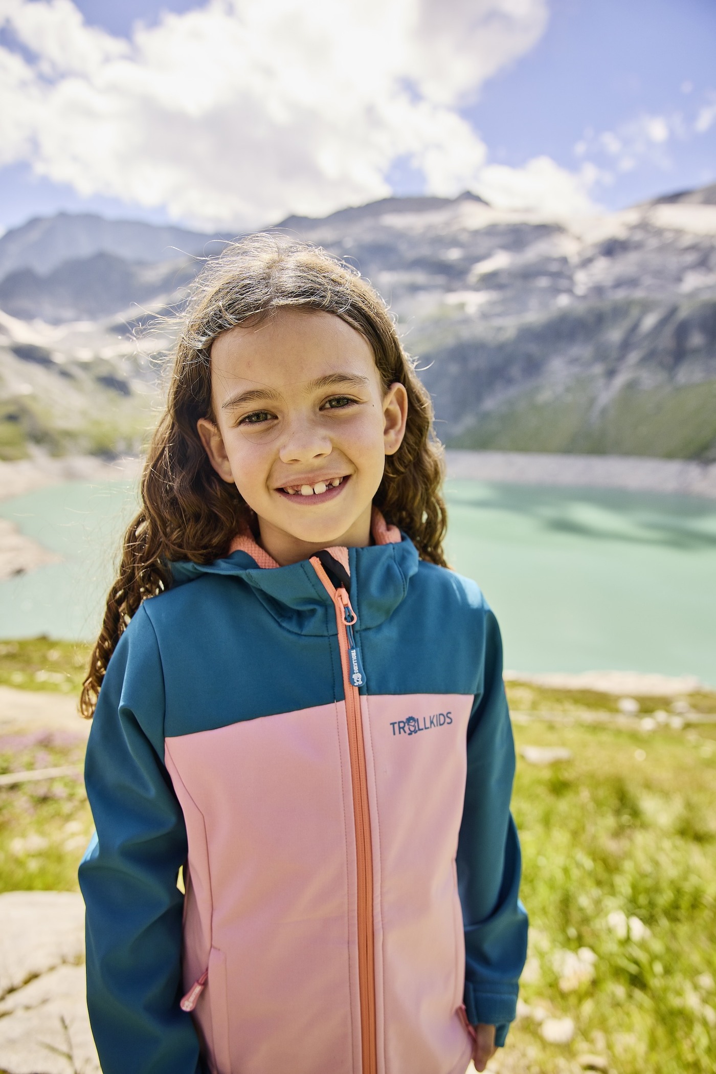 Trollkids Softshell-Jacke GIRLS KRISTIANSAND JACKET XT - Harbor Blue/Peony Rose/Mellow Peach