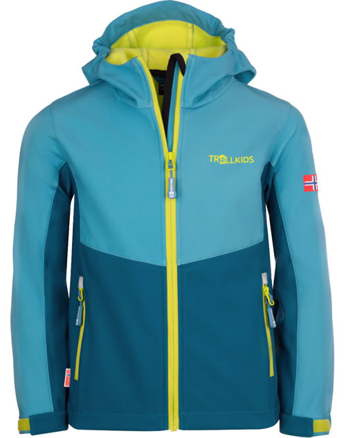 Trollkids Softshell-Jacke KIDS KRISTIANSAND JACKET petrol/blue/lime